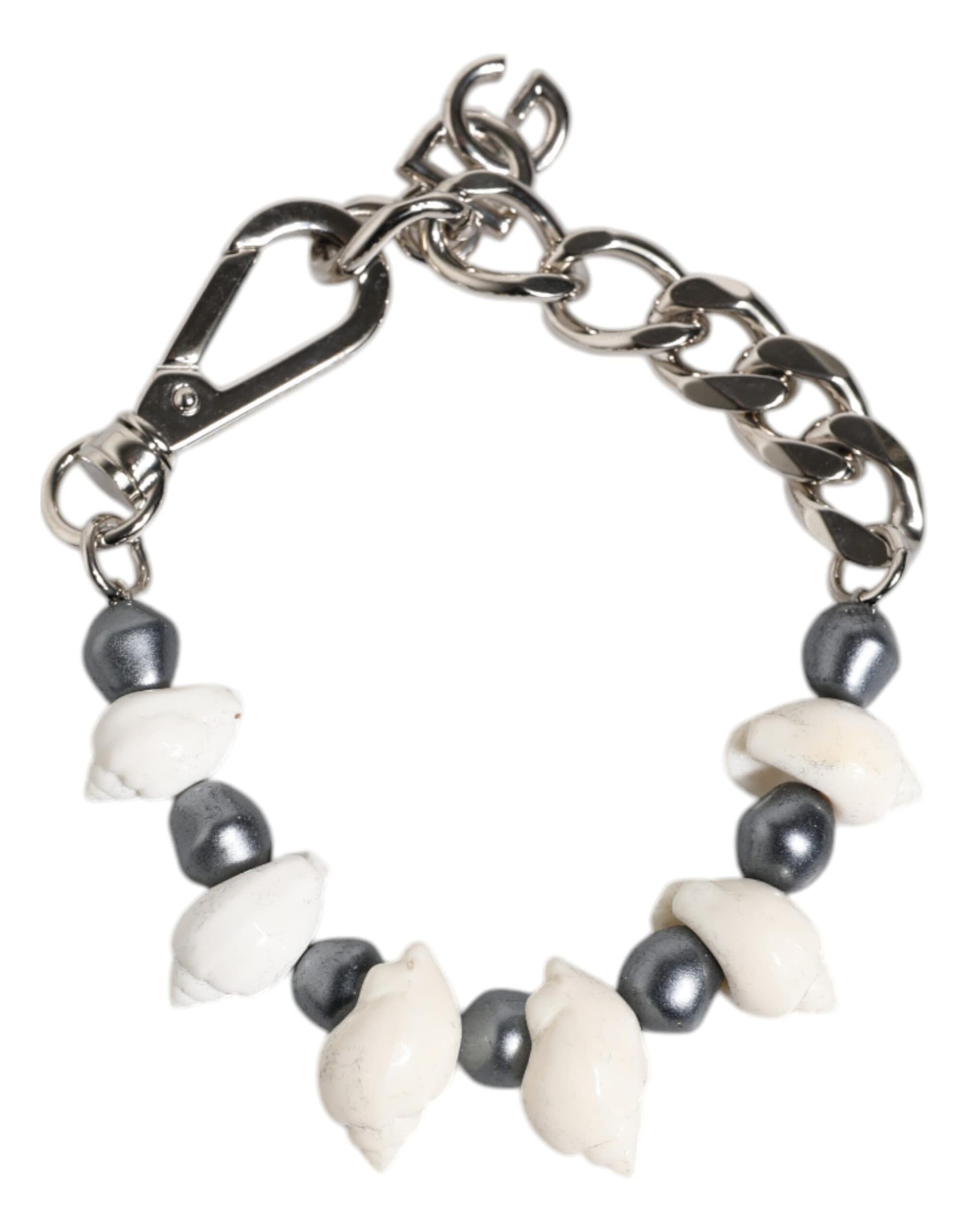 Dolce & Gabbana Silver Tone Brass Beaded Shell DG Logo Pendant Bracelet