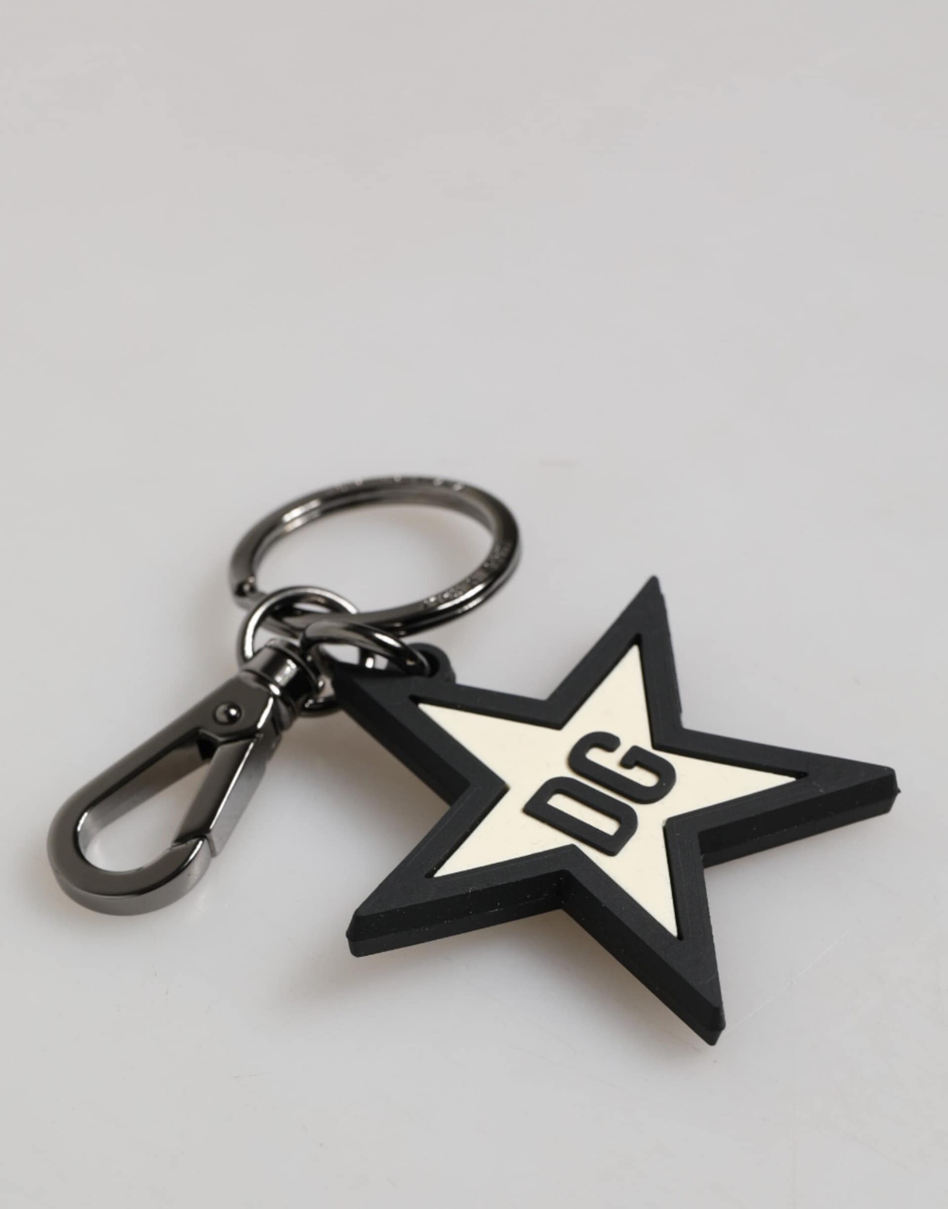 Dolce & Gabbana White Black DG Logo Star Rubber Men's Keychain Keyring