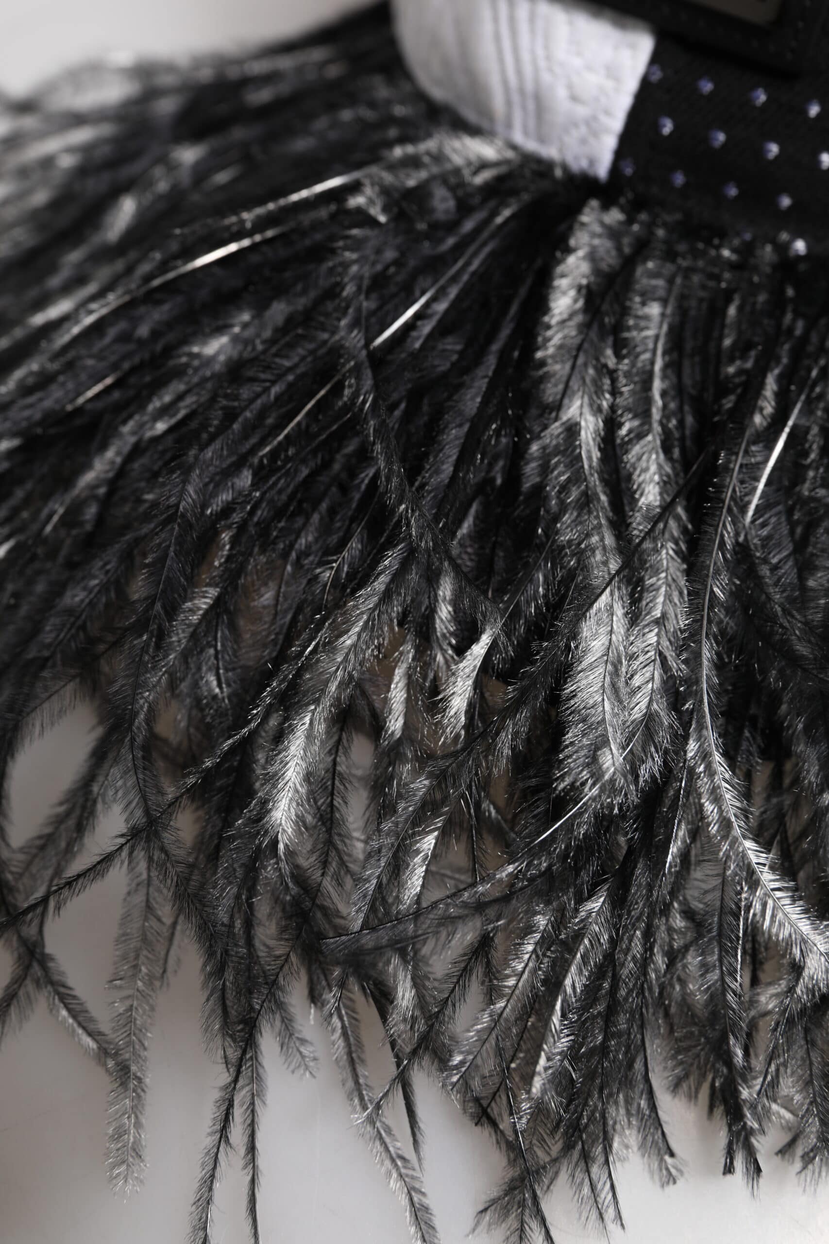 Material: 47% Silk 19% Cotton 12% Polyester 8% Acetate 7% Virgin Wool 4% Ostrich 3% Nylon