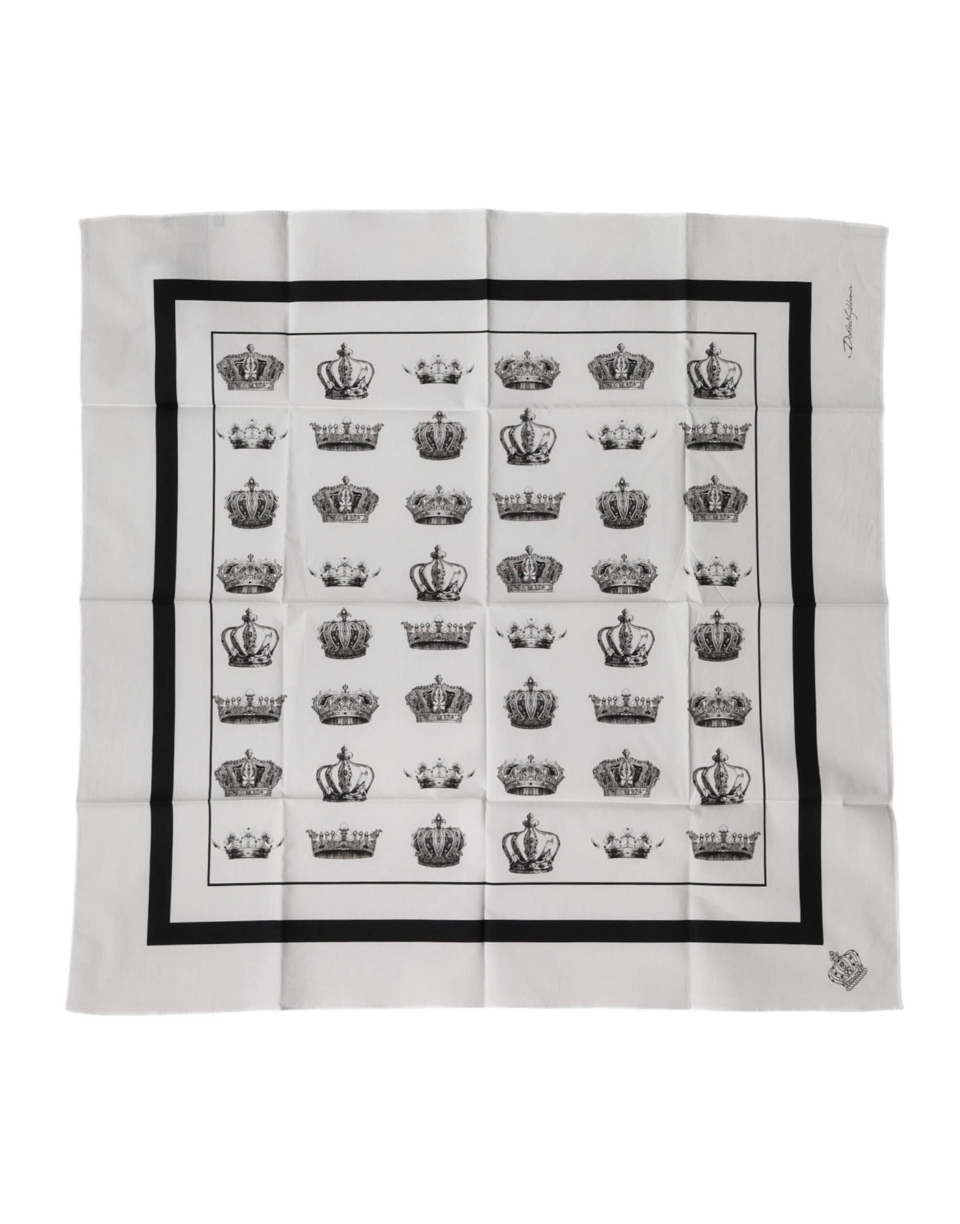 Dolce & Gabbana White Crown Cotton Square Foulard Scarf
