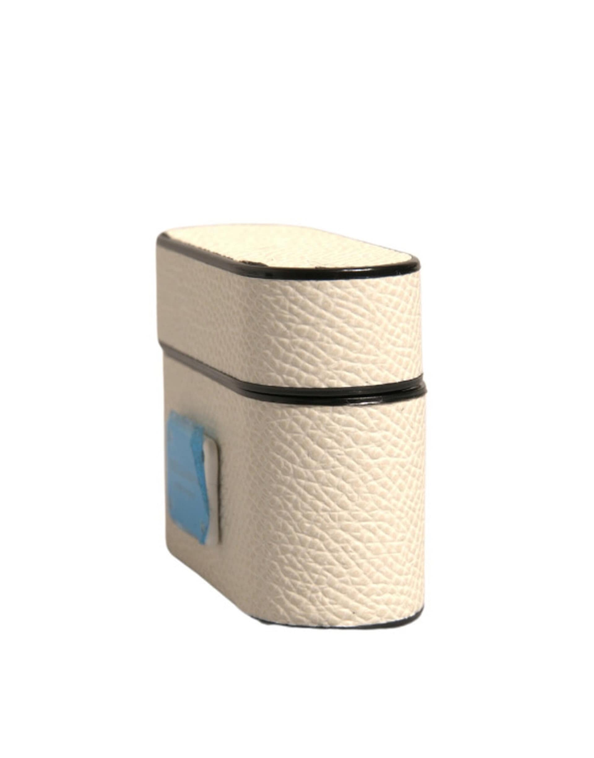 Dolce & Gabbana White Leather Metal Logo Plaque Holder Airpods Case