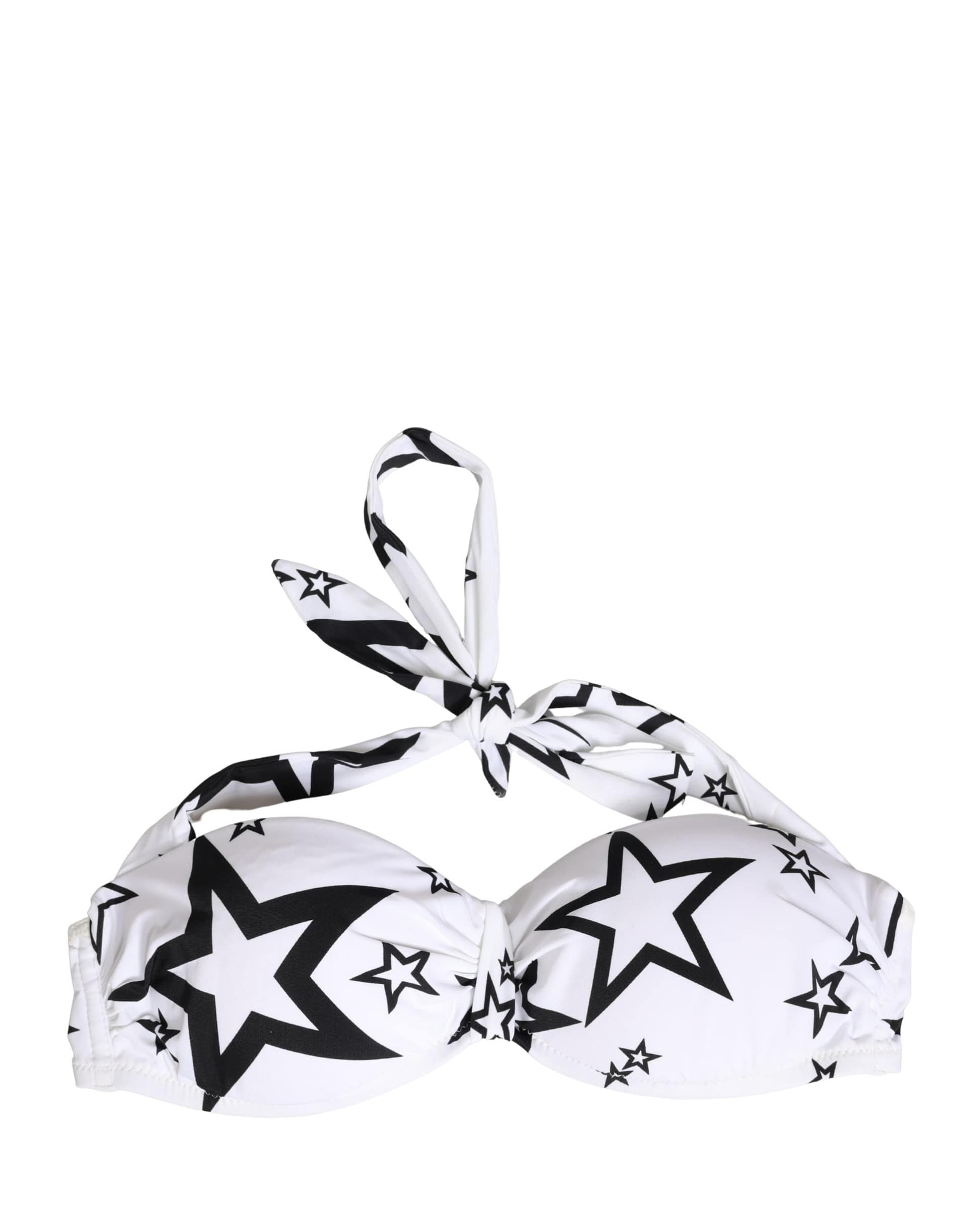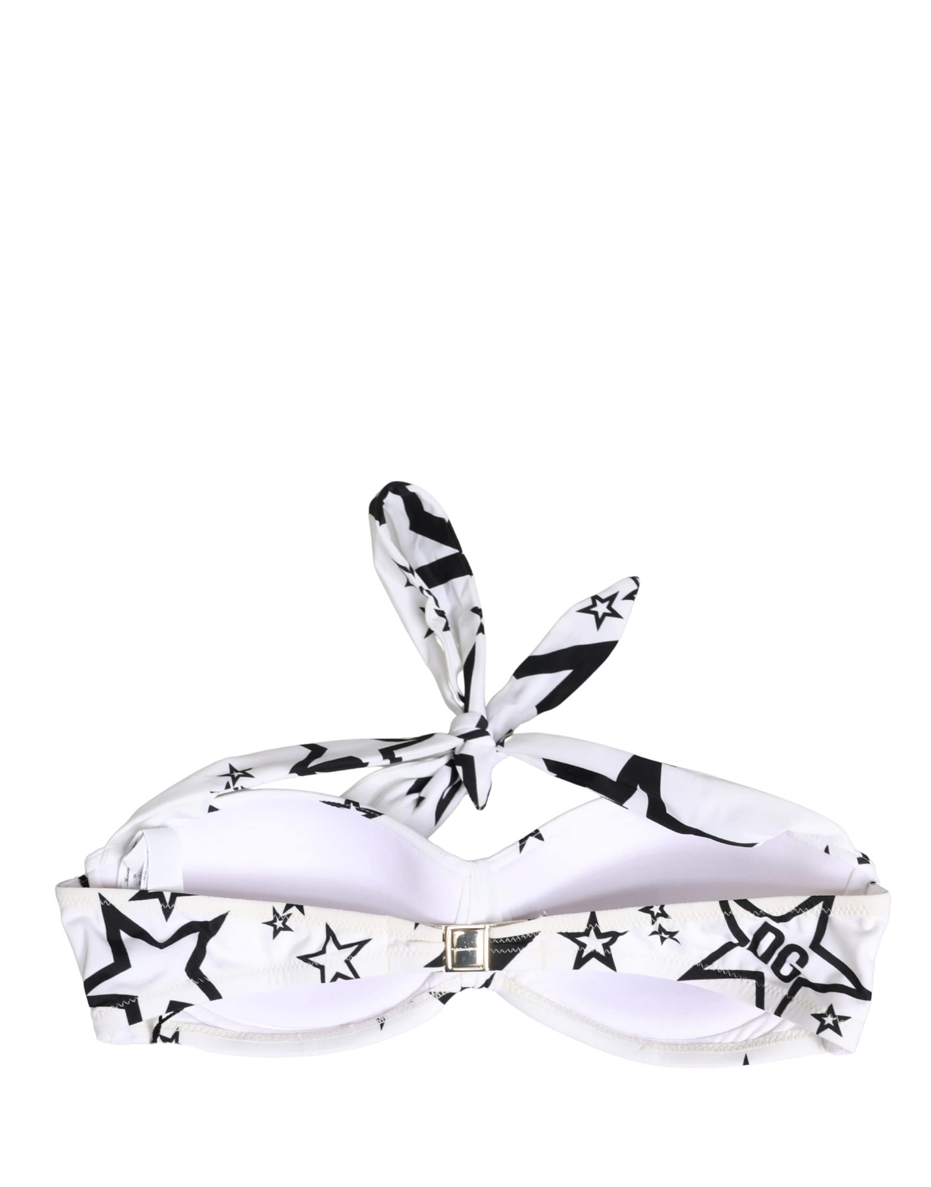 Gorgeous brand new, 100% Authentic Dolce & Gabbana Millennials Star Print Padded Bandeau Bikini Top in white. Designed with a sleek strapless silhouette, it offers a flattering and supportive fit while highlighting the neckline and shoulders. Crafted from premium stretch fabric, it ensures comfort and flexibility—perfect for stylish beach or resort wear.