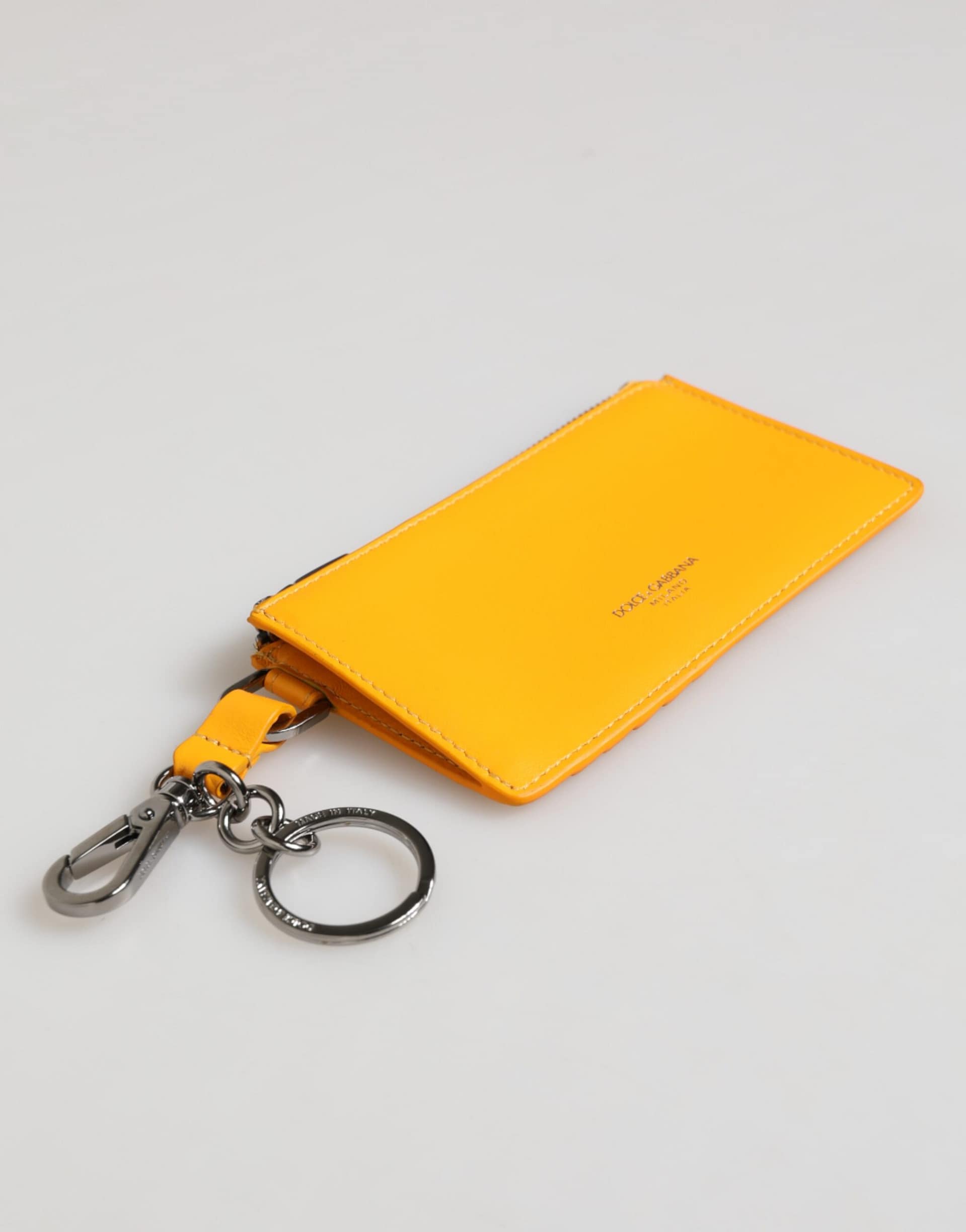 Absolutely stunning, 100% Authentic, brand new with tags Dolce & Gabbana men credit card holder wallet crafted from vibrant yellow-orange leather, designed with both function and flair. Comes with a clip-on key holder for added versatility.