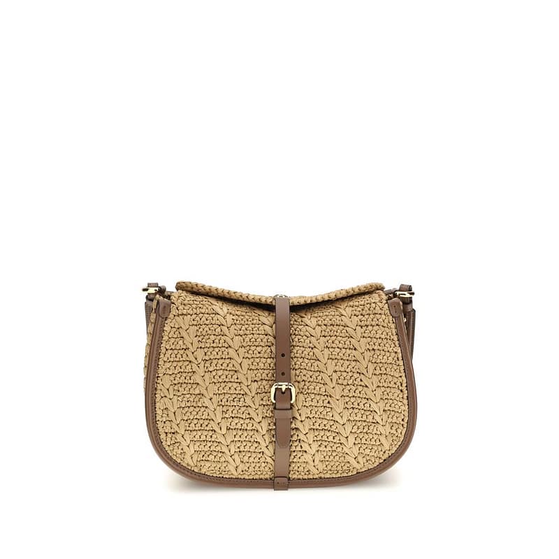 The Pony Shoulder Bag in crochet raffia by Etro expresses refined boho elegance. Featuring a double closure, it features a magnetic button decorated with the Pegasus metal coin and a secondary closure with a functional buckle. The model includes interchangeable handle and shoulder strap for hand, shoulder or crossbody carry, enhanced by Paisley detail on the snap hooks. A practical interior wall pocket completes the design.