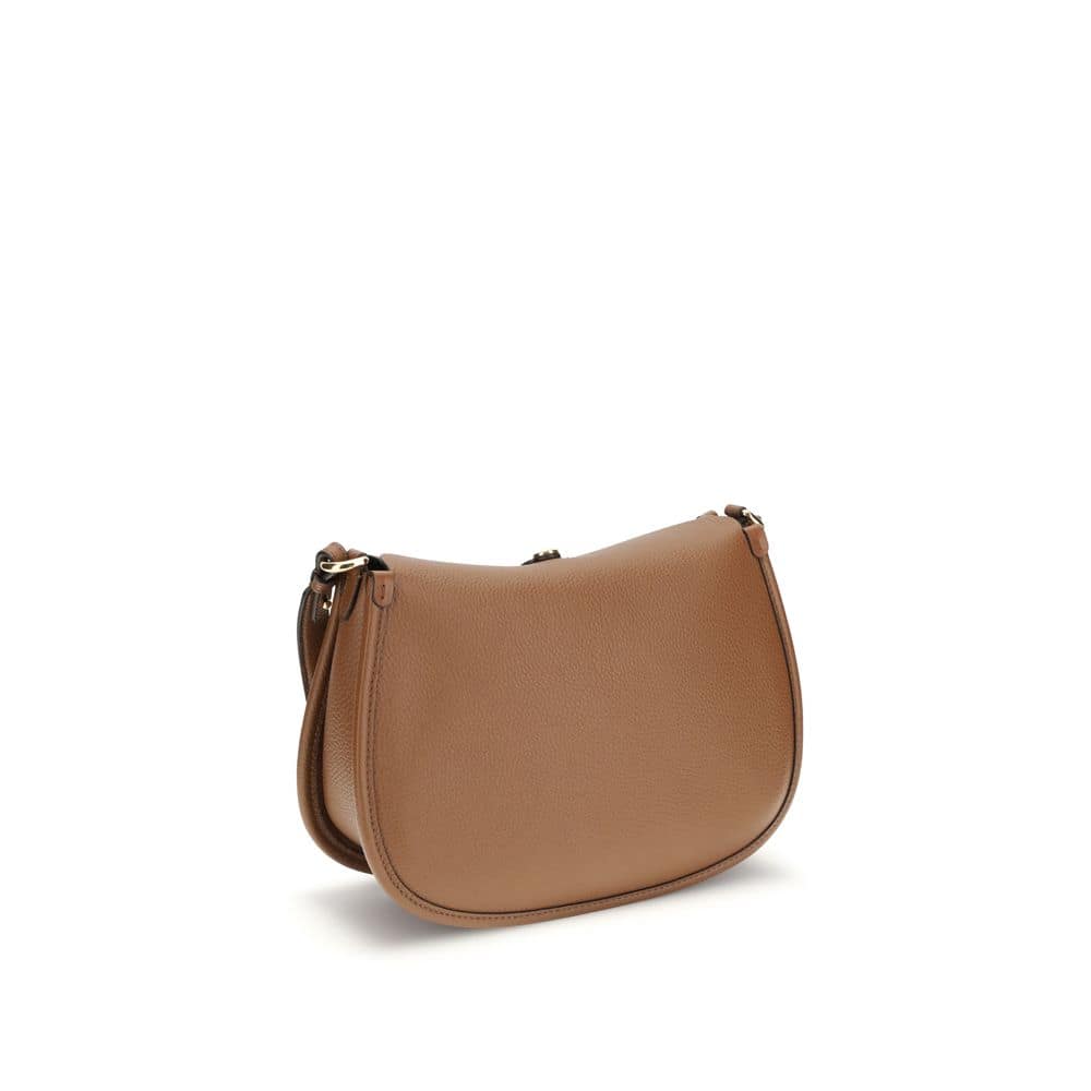 The medium Pony Bag by Etro is crafted from solid-color grained leather with a suede interior and features soft, fluid lines. Presented during the Fall-Winter 2025 fashion show, it offers a double closure: a magnetic button engraved with the ETRO logo and Pegaso motif—crafted using coin-minting techniques—and a functional metal buckle. The design includes interchangeable handles and shoulder straps enhanced by Paisley details on the clasps, an inner wall pocket, and gold-finish metal hardware.