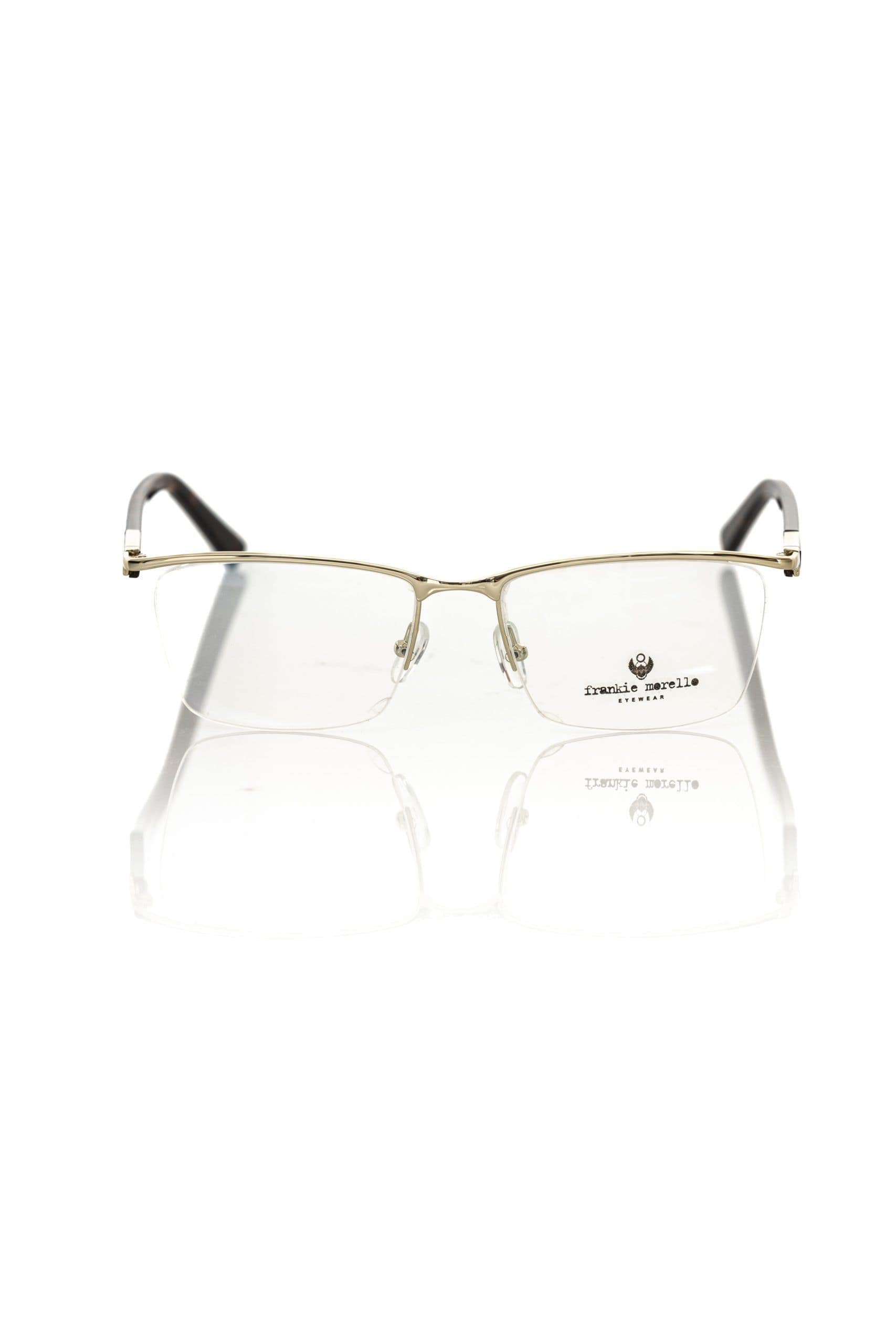 Dare to redefine your vision with the Frankie Morello masterpiece—Clubmaster Model Eyeglasses. A flirtation of classic allure and modern sophistication, these glasses boast a gold-colored metal frame, infusing a dash of opulence into your daily ensemble. The Havana-hued temples, etched with the Frankie Morello logo, whisper elegance synonymous with Italian craftsmanship. Perfect for the man with discerning taste and an eye for style.