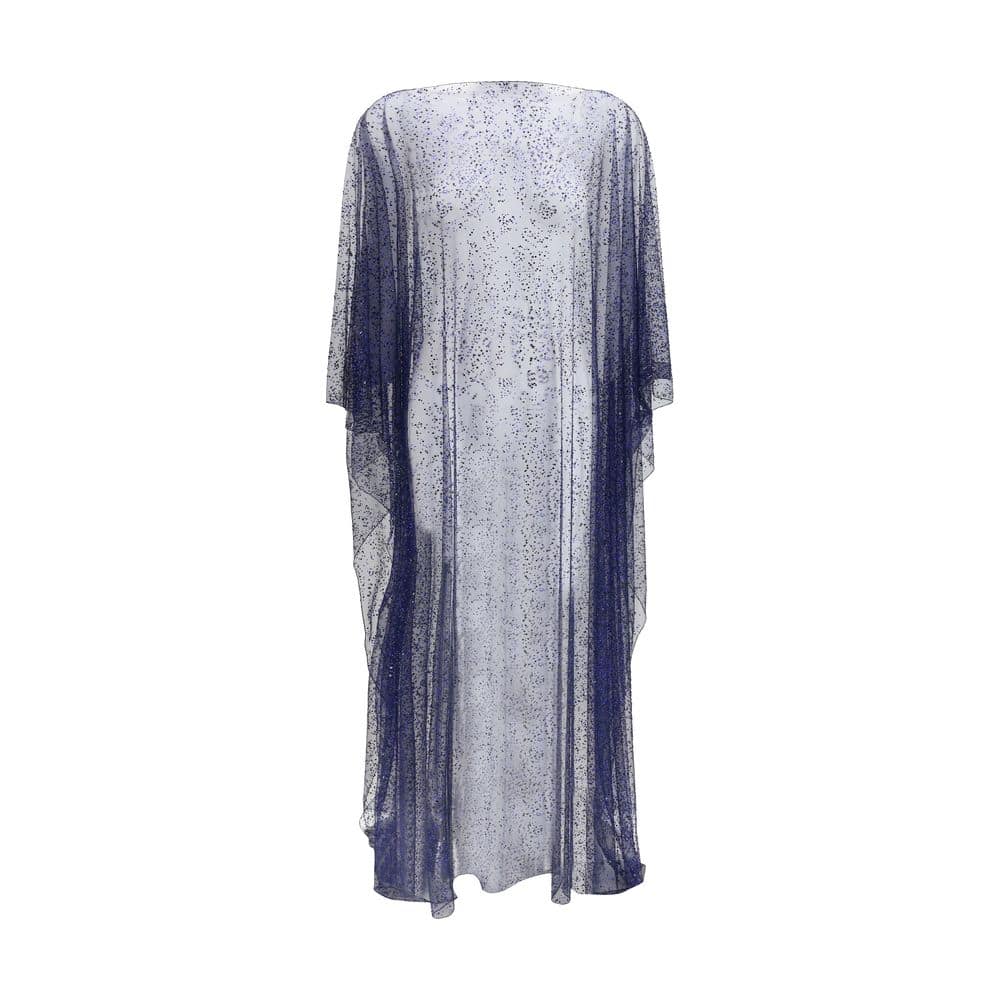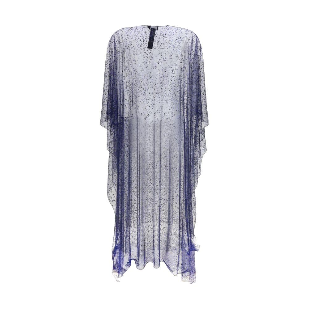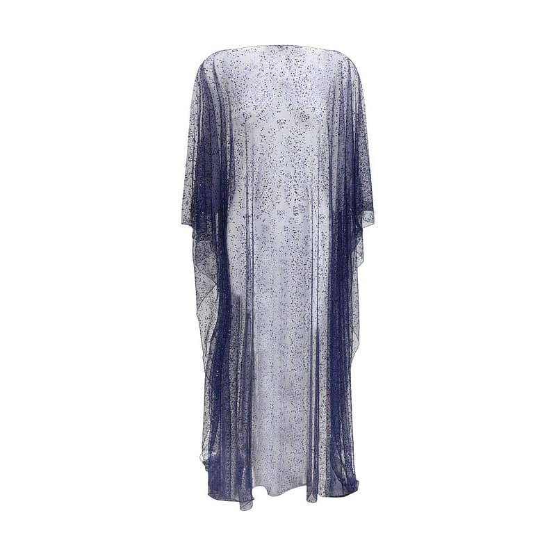 The long tulle and crystal-embellished Poncho by Giorgio Armani stands out for its fluid lines and refined elegance. Crafted from delicate tulle, it is adorned with all-over strass that create a multitude of sparkling light reflections. The design features a straight neckline and long sleeves, completing a sophisticated and timeless piece that reflects the house’s signature style.