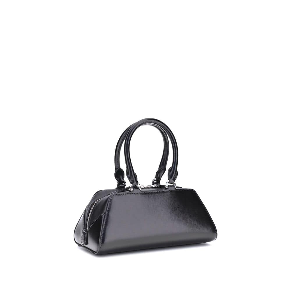 The Antigona East-West Mini Handbag by Givenchy stands out for its elegant and structured design, with an elongated silhouette and a gusseted construction inspired by origami. Crafted with articulated leather handles and featuring four D-rings for the attachment of the adjustable and removable shoulder strap, it offers versatility and refinement. The embossed GIVENCHY signature on a pentagonal patch adorns the front, while silver-finish metal hardware completes the look. The main compartment with zipper closure ensures practicality and organization.