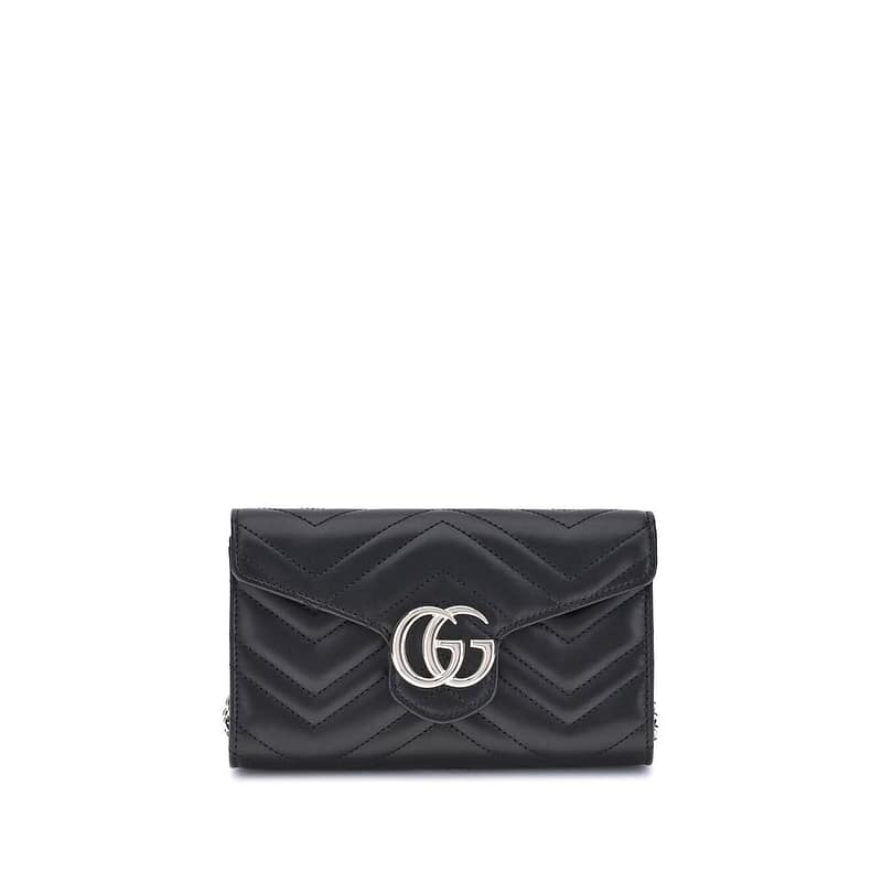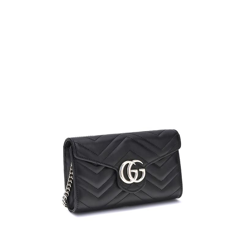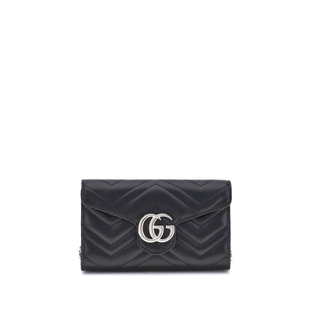 Gucci’s GG Marmont Wallet with Chain is a refined and functional accessory, presented in Gucci’s exclusive Rosso Ancora matelassé leather with chevron pattern. Light gold-tone hardware and the iconic Double G enhance its elegance. The interior is lined in a sophisticated burgundy taffeta lining and offers impeccable organization with six card slots, a zippered pocket and a flap pocket. It is securely closed by a snap button.