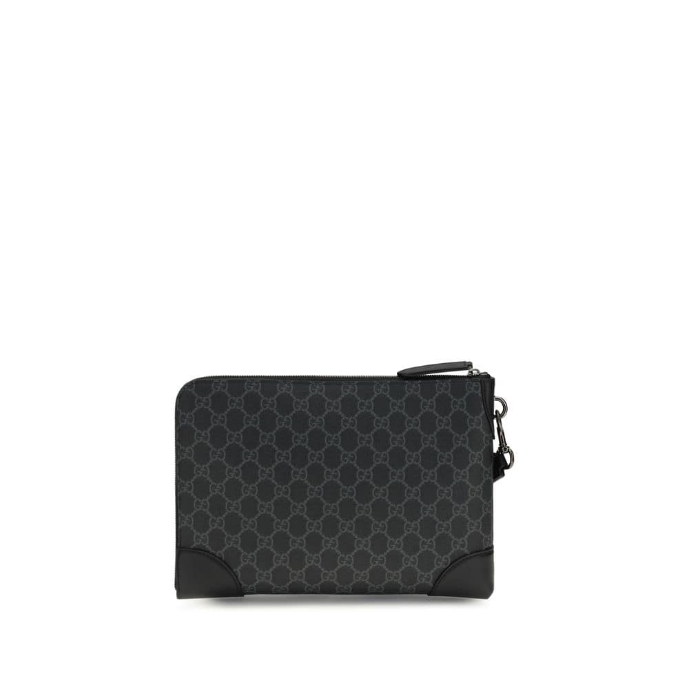 The GG Print Document Holder by Gucci is crafted from coated canvas featuring the iconic all-over GG print. The removable leather wrist strap ensures practicality, while the zip closure ensures security. The lined interior, with three card slots, combines organization and style in an elegant and functional accessory.