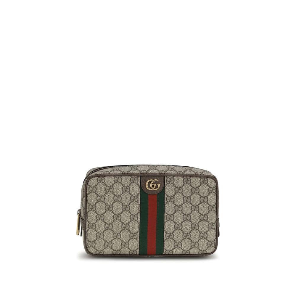 The Savoy Pouch in GG Supreme canvas by Gucci is crafted from the iconic GG Supreme canvas and features a metallic GG detail on the front and Web stripe on both the front and back. The zip closure ensures security, while the lined interior, featuring a zip pocket, offers practicality and stylish organization.