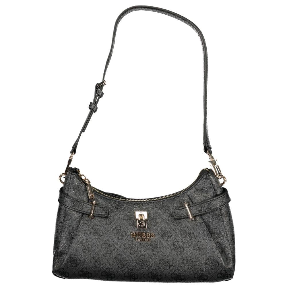 Unleash the essence of sophistication with the ‘YESBA’ bag by GUESS JEANS. Designed for the bold and the fashionable, this iconic piece boasts functionality and style with its detachable shoulder handle and a plethora of pockets, including an external and internal pocket, and dedicated space for your phone. Contrasting details bring a lively edge to the sleek black polyurethane construction, while the signature GUESS print and logo affirm your style status. Featuring a secure zip closure and protective feet to keep it pristine, this bag is crafted to make a statement wherever you go.
