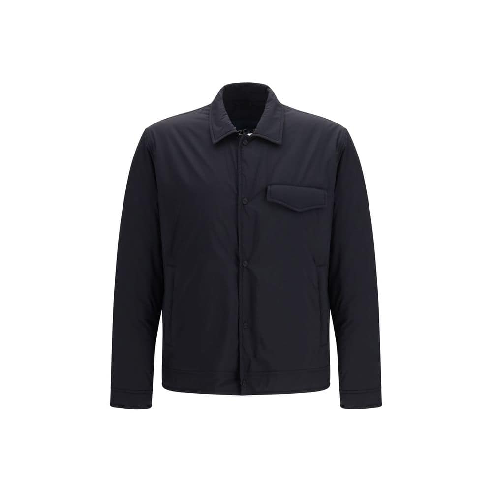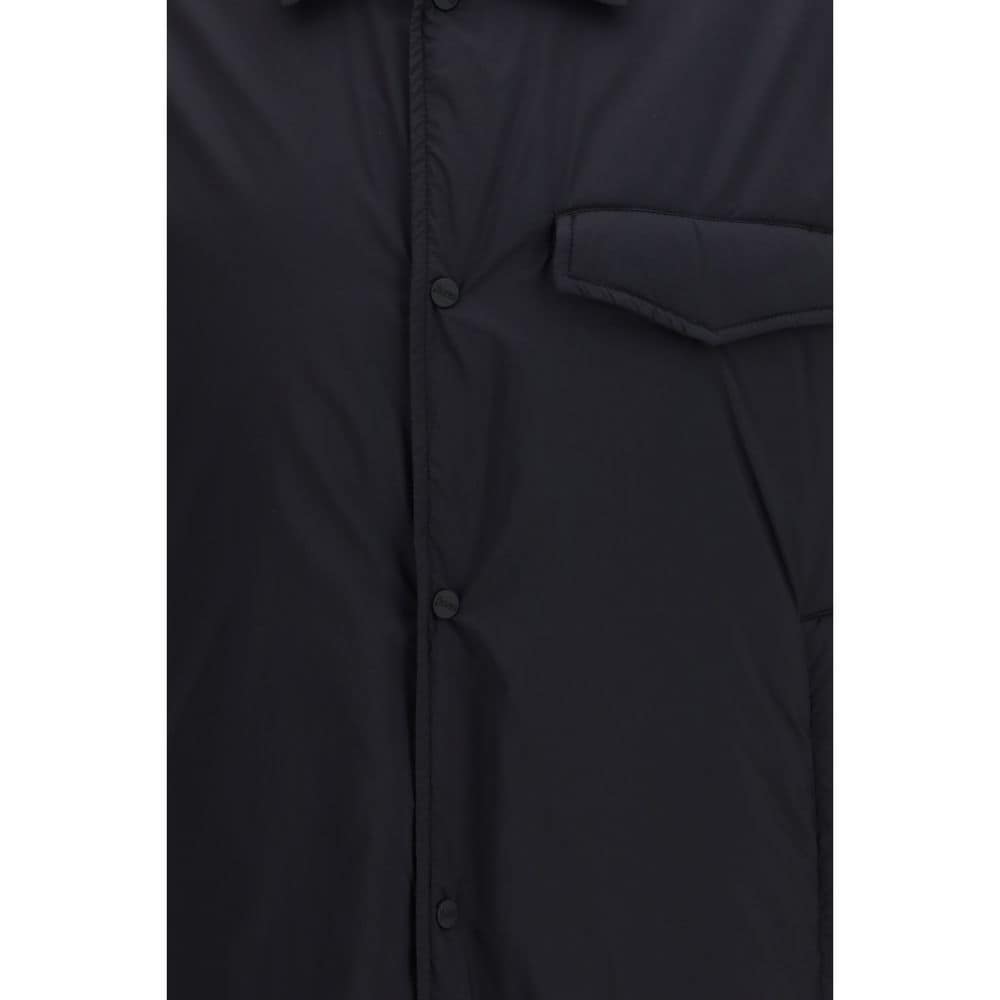 The recycled nylon microfiber Shacket by Herno combines functionality with contemporary style. Crafted from microfiber with a light reverse-side coating, it features a water-resistant, soft-touch, matte texture. The design includes soft padding, making it ideal for transitional seasons, along with a shirt collar, long sleeves, and buttoned cuffs. It is finished with a flap chest pocket, welt pockets, and snap-button front closure for practicality and refinement. The piece belongs to the Herno Globe Lab line, which highlights garments partially made with sustainable materials. Regular fit.