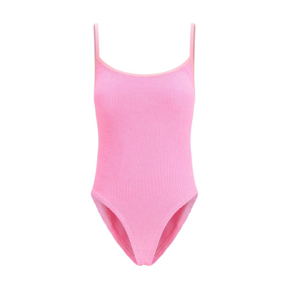 The Pamela Swimsuit by Hunza G is ideal for those seeking elegance and comfort in a sporty design. This one-piece model features a high neck silhouette with delicate tonal straps, which give a sophisticated and dynamic touch. The exclusive Original Crinkle construction allows the fabric to stretch to flex, sculpt and support every curve, adapting perfectly to all body types with a unique fit.