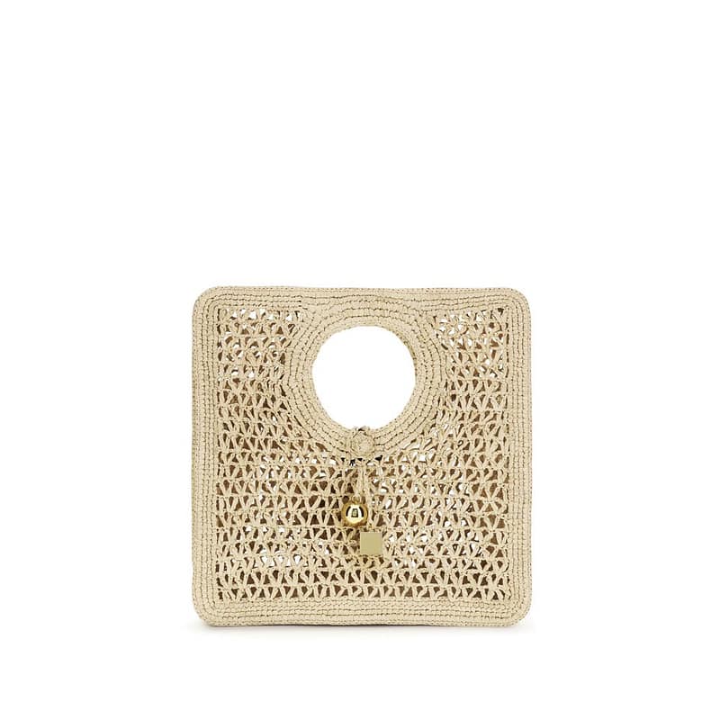 The Le Petit Carré Spiaggia Handbag by Jacquemus is a handcrafted and refined summer accessory. Small and squared, made entirely by hand from woven raffia, it features a knot closure, round and square gold-tone metal charms, and reinforced woven edges in contrast, perfect for completing beach looks or casual outfits with style.