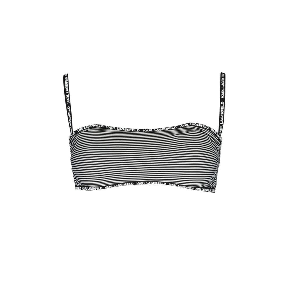 Embrace the essence of summer luxury with KARL LAGERFELD BEACHWEAR’s stunning BAND swimsuit. Designed to make a statement by the poolside or at golden hour on the beach, this piece features a sleek black hue, complemented by contrasting details for a touch of boldness. Exude confidence with its figure-flattering lined interior, while enjoying versatility thanks to removable padding and straps. Finalize your chic swim look effortlessly with the practical yet fashionable clip closure. Dive in with style that shines as bright as the sun!
