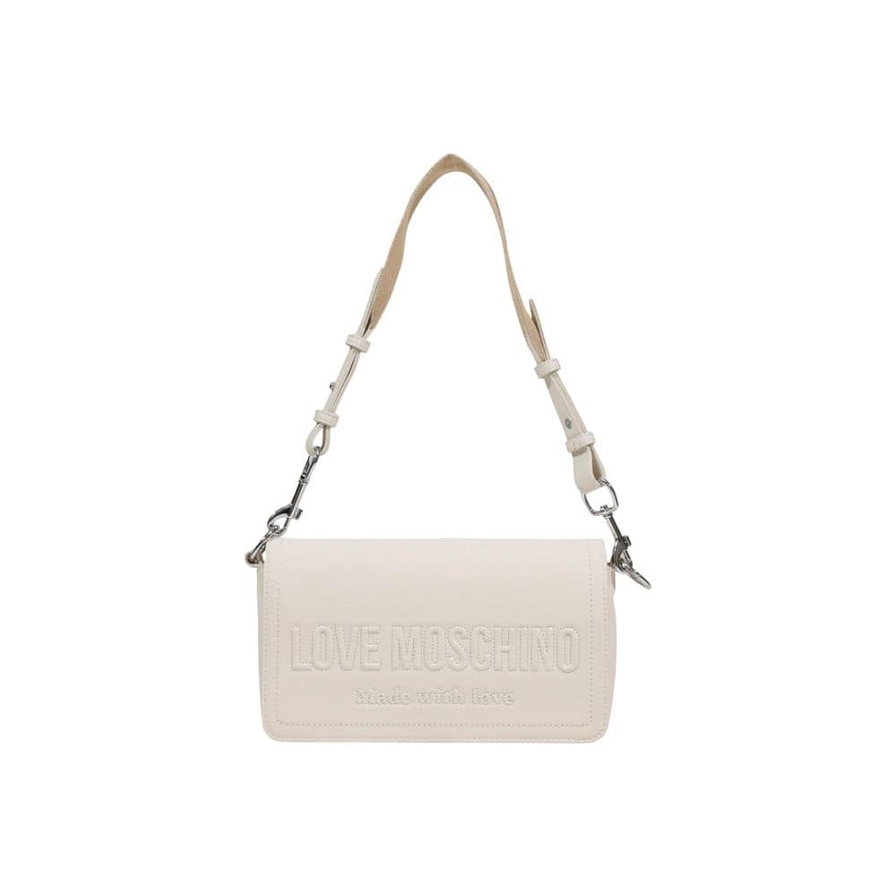 Discover the Love Moschino small women’s bag, model JC4046PP1, crafted entirely from GRS-certified polyurethane for a sustainable yet stylish choice. Featuring a compact and elegant design, the bag is adorned with the embossed Love Moschino logo and the ‘Made with love’ inscription on the front, adding a unique touch to any outfit. The adjustable and removable shoulder strap with metal details allows for versatile wear, either over the shoulder or by hand, making it suitable for any occasion from day to night. Perfect for carrying essentials, this bag combines practicality with contemporary design, making it a must-have accessory for the season.