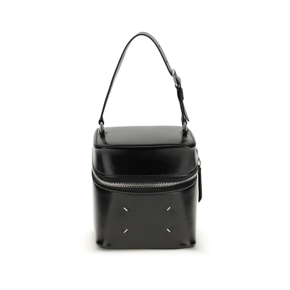 The Big Cube Bucket Bag by Maison Margiela is an accessory with an iconic and contemporary design. Characterized by a rigid, cubic structure, it stands out for its wrap-around zipper closure that wraps around the profile of the bag. Equipped with an adjustable handle and a removable chain shoulder strap, it offers versatility of use. The iconic white stitching on the front completes the model with the unmistakable signature of the fashion house.