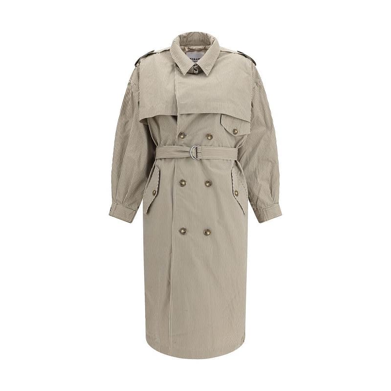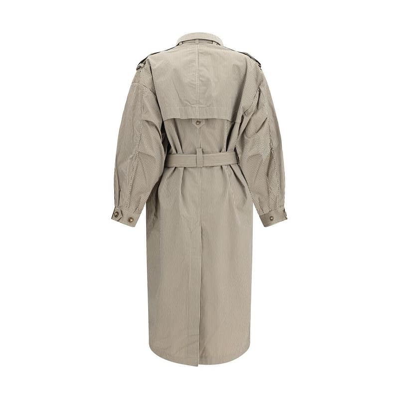The Chilma striped Coat by Marant Étoile combines relaxed elegance with a contemporary attitude. The design features a striped pattern that enhances the silhouette with a refined graphic touch. It has a front button closure and a waist belt that allows the fit to be adjusted while defining the shape. Long sleeves and flap pockets complete the design with both functionality and style, making it a versatile piece for sophisticated yet effortless looks.