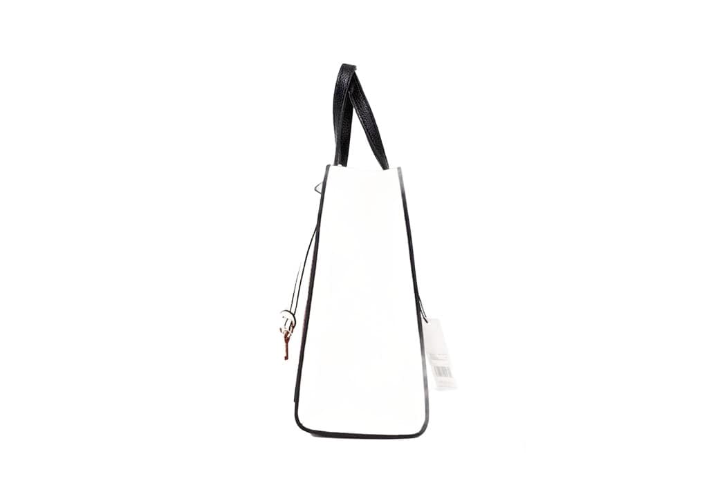 With a compact size of 9 inches in width and 8 inches in height, the tote is perfect for carrying essential items without sacrificing elegance. Its rectangular shape and zip closure provide security, while the black detachable strap allows for versatile wear – carry it as a crossbody or use the double handles for a more classic handbag look. Designed with a handle drop of 4 inches, it offers comfort and ease of access.