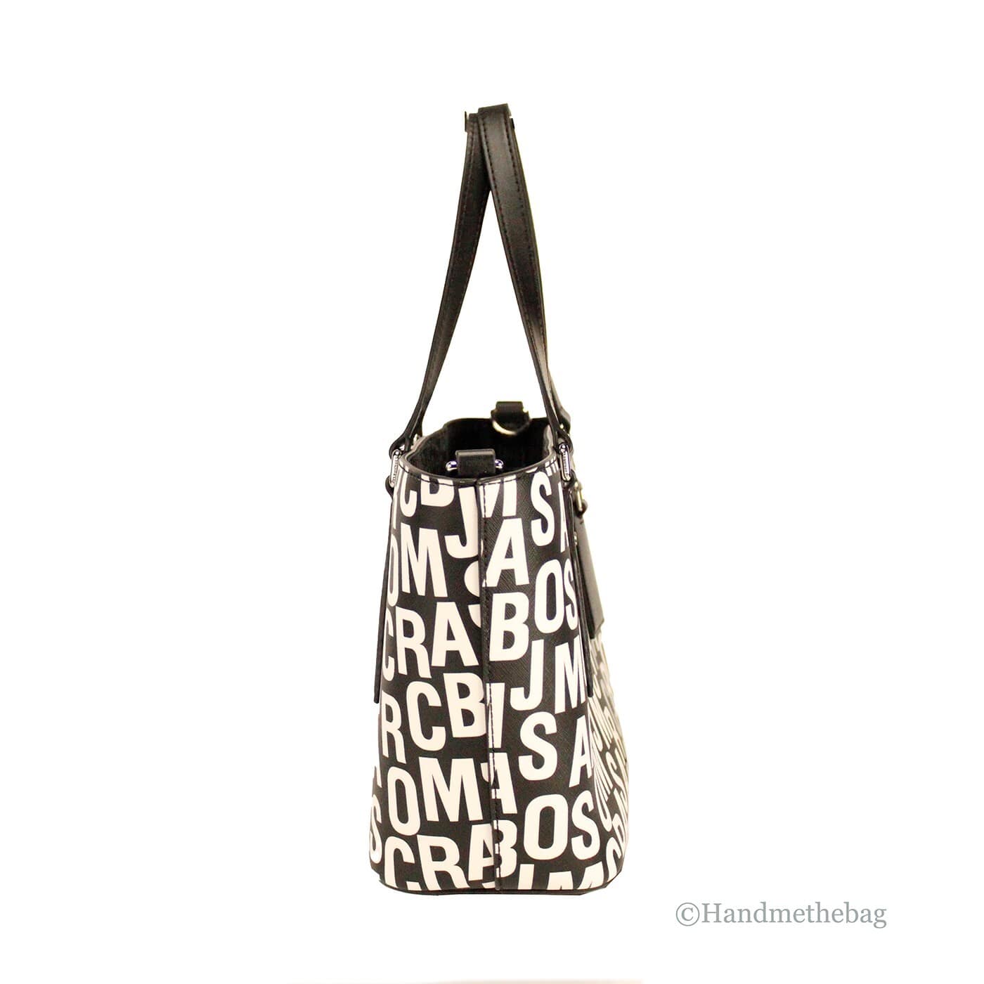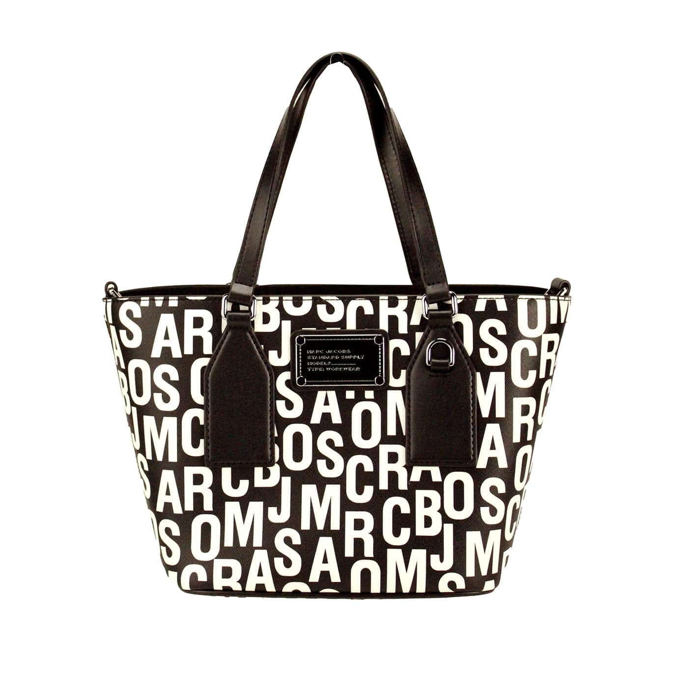 Marc Jacobs Small Black White Monogram Print Saffiano Leather Tote Crossbody Bag