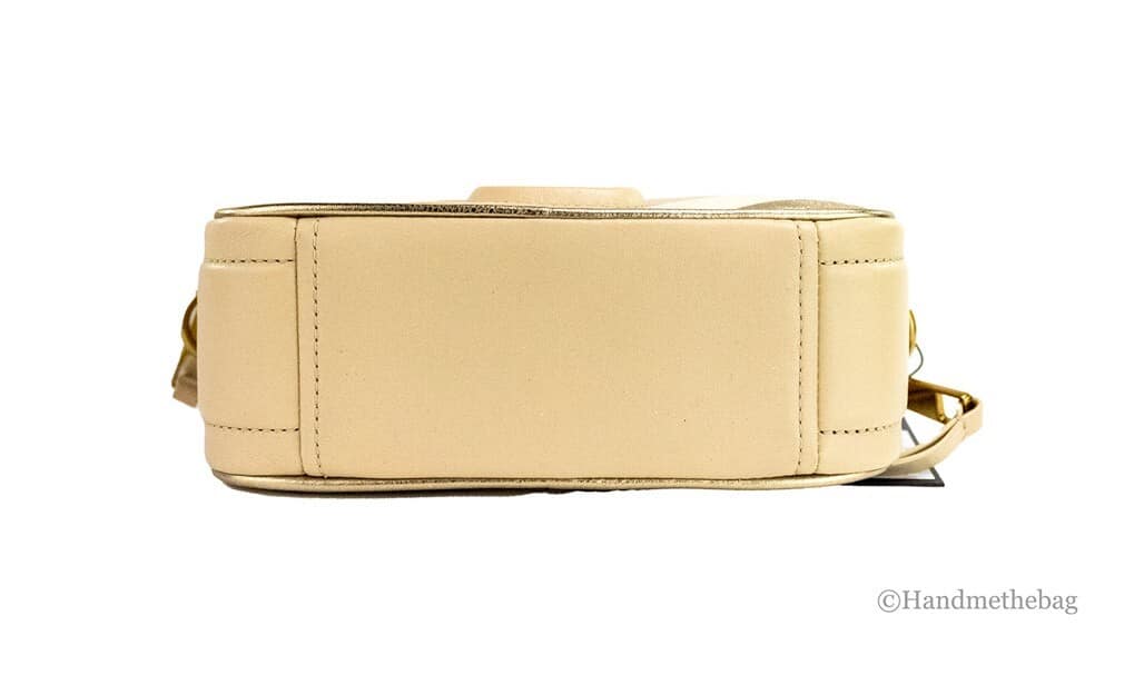 With meticulous attention to detail, this designer piece by Marc Jacobs is sure to make a statement. It measures 8 inches in width, 5 inches in height, and 3.5 inches in depth, perfectly sized for daily use or travel. The chic beige exterior complements the ivory lining and is adorned with elegant gold hardware, reinforcing the bag’s high-end appeal.