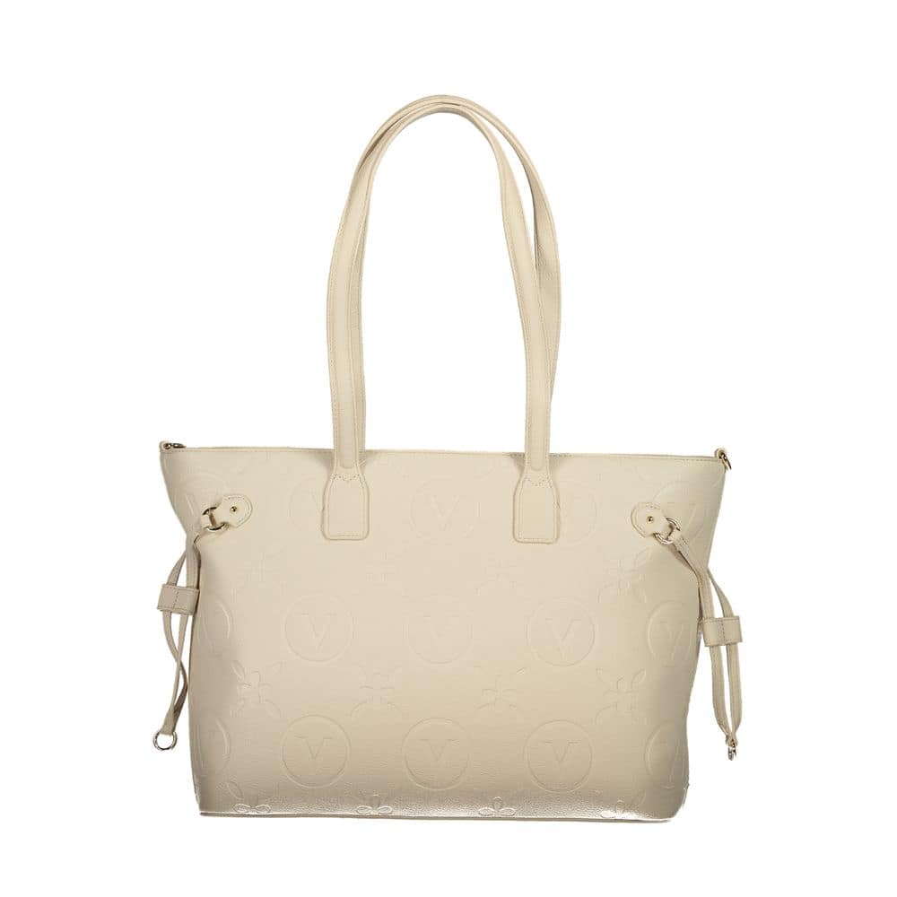 Elevate your ensemble with the chic elegance of VALENTINO BAGS. This exquisite beige handbag promises versatility and sophistication, featuring dual shoulder handles paired with adjustable, removable straps for a customized carrying experience. Inside, two pockets ensure your essentials are organized, while the contrasting details and prominent logo add a touch of distinguished charm. Secure your belongings with the reliable zip closure and take pride in the commitment to sustainability with its recycled construction.