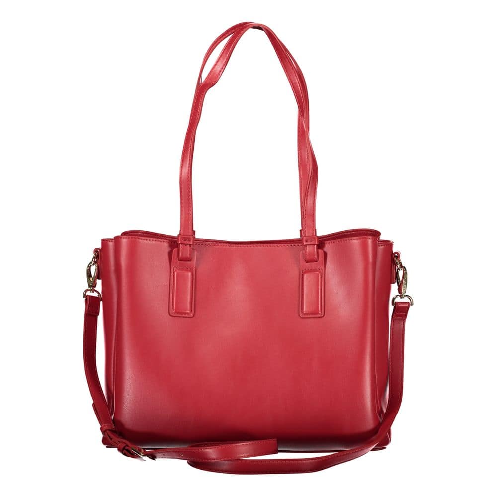 Turn heads and elevate your style with this striking red bag from Valentino Bags. This bold accessory features two shoulder handles and an adjustable, removable shoulder strap for ultimate versatility. Stay organized with two external pockets, an internal pocket, and dedicated document holder spaces. Secure your essentials with the zip closure, and strut confidently with protective feet safeguarding your chic investment. Accentuated with a logo detail, this masterpiece is crafted from sustainable materials.