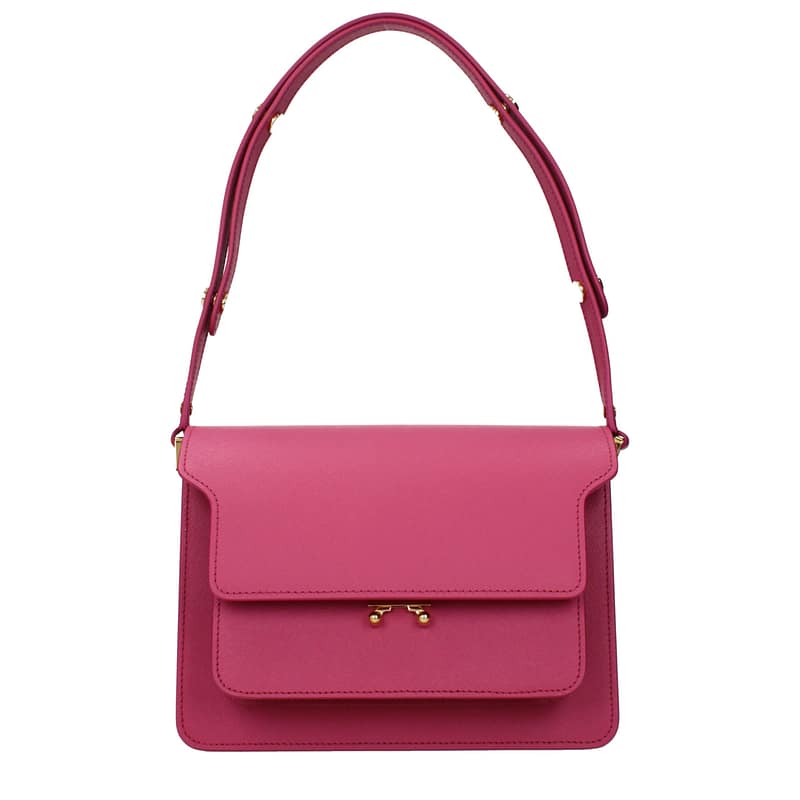 The product with MPN SBMPN09U07LV520Z646C and code F77056 leather in fuchsia is a shoulder bags designed by Marni. It has features like adjustable handle, divider inner pocket, adjustable shoulder.