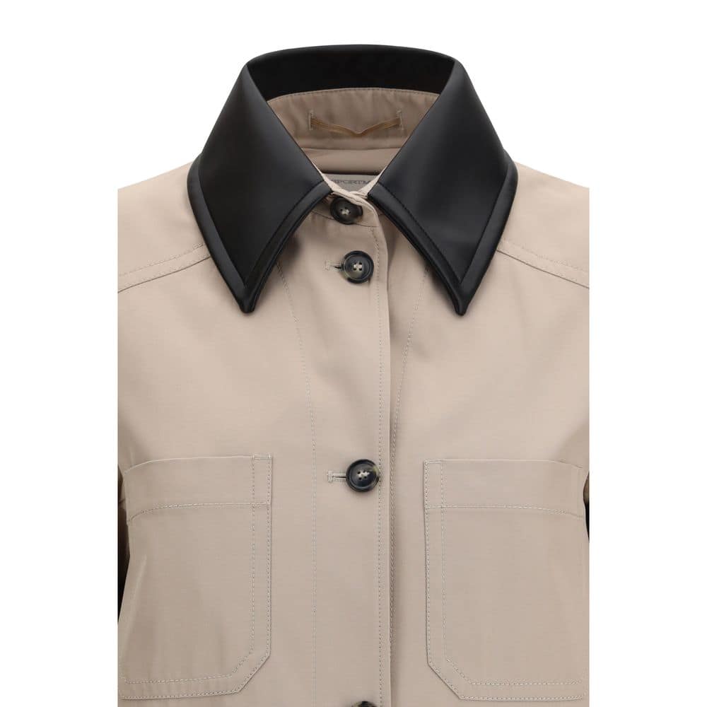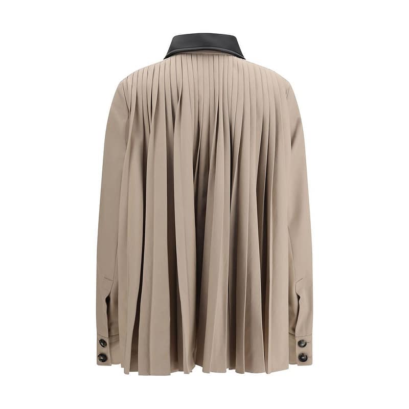 The Cotton Gabardine Shirt with Pleated Back by Sportmax merges functionality with refined design in a contemporary silhouette. Crafted from water-repellent technical cotton gabardine with inner lining, it features a regular front with applied chest pockets and visible stitching, a coated jersey shirt collar and visible button fastening. The fully pleated back adds movement and dimension, while the slightly flared fit shapes a clean and sophisticated profile.