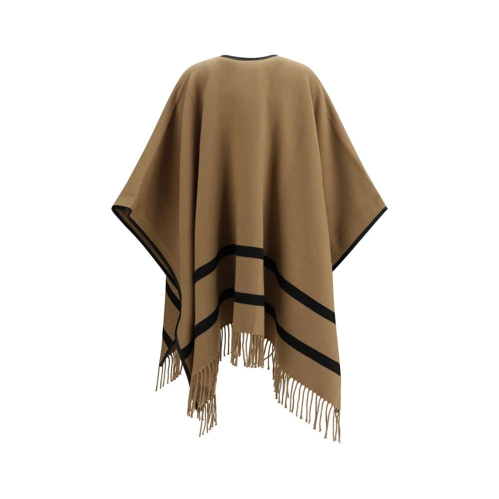 The Aris wool Poncho by Max Mara conveys graphic, sophisticated elegance through its wide, fluid silhouette. The design is enhanced by contrasting black trim and a decorative graphic detail. An intarsia Max Mara logo running along the side highlights the brand’s identity, while fringe detailing at the hem adds movement. The crossed V-neckline completes the piece with a refined, contemporary finish.