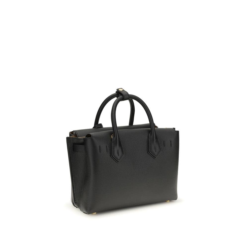 The Milla Handbag by MCM features a trapezoidal silhouette that gently flares upward. Equipped with two handles and a shoulder strap, it can be worn by hand, on the forearm or over the shoulder with great versatility. Gold details, including protective feet, exclusive closure and central “Mode Creation Munich” logo, add elegance, while discreet stitching and contrasting pink piping define a refined, minimalist design.