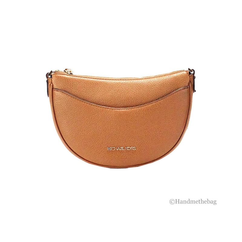 Elevate your accessory collection with the Michael Kors Dover Small Luggage Pebbled Leather Half Moon Crossbody Bag. Crafted from luxurious pebbled leather, this stunning purse combines style with functionality, making it the perfect companion for any occasion, whether it be a business meeting, a casual outing, or a formal event. The elegant crescent shape adds a sophisticated touch, while the spacious interior boasts three inner card slots to keep your essentials organized.