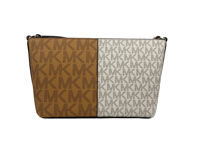 Elevate your accessory collection with the Michael Kors Jet Set Small Two-Tone Logo Crossbody Bag, an exquisite combination of style and practicality. Crafted from high-quality coated canvas and adorned with the iconic Michael Kors logo, this bag exudes sophistication. Its elegant design features a rich deer exterior complemented by golden hardware, making it an ideal accessory for both formal occasions and casual outings.