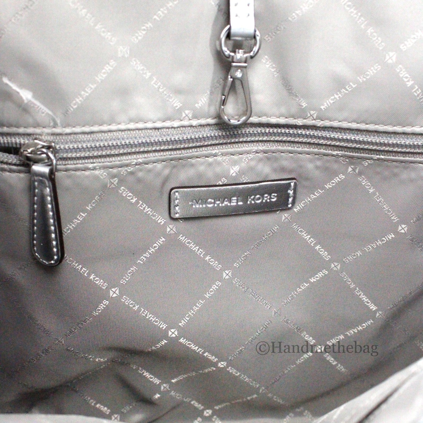 Designed with practicality in mind, the spacious interior includes inner pockets that help organize your essentials, while the double handles ensure easy carrying. The silver-toned hardware complements the white exterior, adding a touch of chic sophistication. With a secure hook and loop closure, you can have peace of mind knowing your belongings are safe. A fashionable bag charm completes the look, giving it a unique flair.