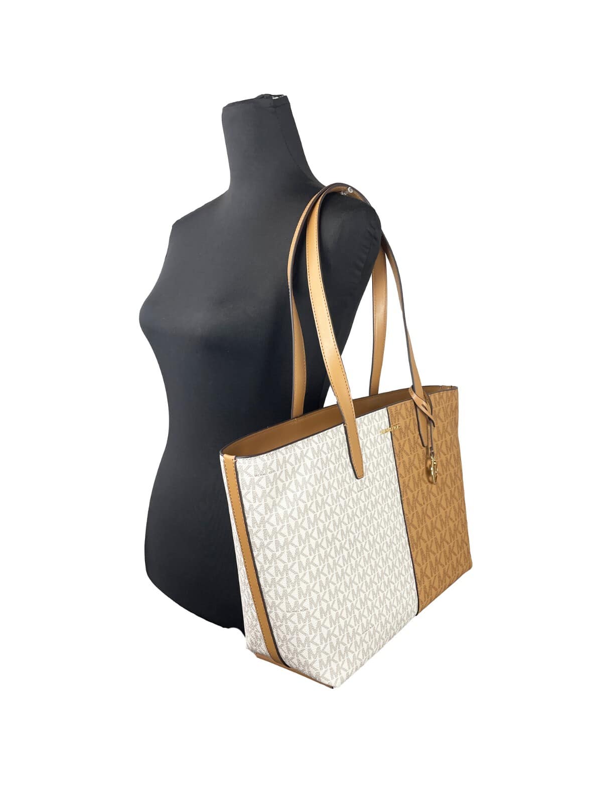 Designed with double handles that offer a comfortable 11.5-inch drop, it allows for versatile carrying options, making it an ideal choice for women on the go. Measuring 18″ W x 10.5″ H x 4.5″ D, the bag’s spacious yet compact design makes it versatile enough for daily use or special occasions. The luxurious gold hardware enhances its designer appeal, ensuring that you not only feel great but look fabulous too. With its timeless logo pattern and refined finish, the Michael Kors Medium Zip Top Tote is not just a bag; it’s a statement piece that showcases your refined taste. Experience the perfect combination of style and practicality with this must-have accessory.