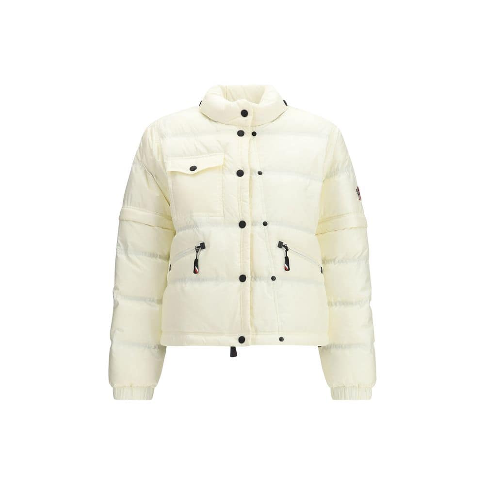 The Mauduits Down Jacket by Moncler Grenoble combines technical performance with contemporary style in a compact, functional design. Crafted from padded nylon, it features a cropped silhouette with a concealed hood adjustable via drawstring. The front zip fastening is complemented by a double row of buttons to adjust the shape, while front zip pockets and a flap-and-button chest pocket add practicality. Long sleeves with elasticated cuffs include zip openings to convert them into short sleeves, and an internal drawstring at the hem allows for volume adjustment. The logo patch on the sleeve, light blue polyester lining, breathable back detail, and rear pocket complete the design. Packable and versatile, this jacket is built for protection and adaptability in all conditions.