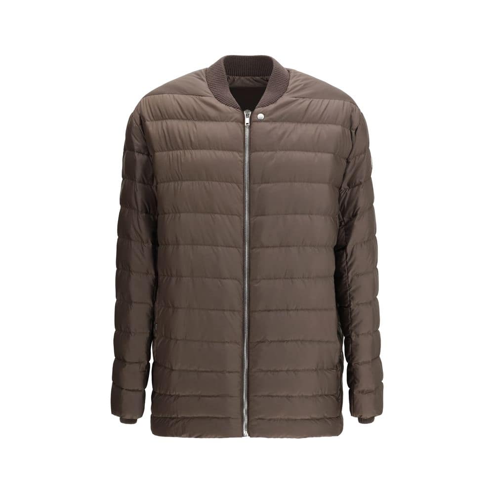 The Flight Down Jacket by Moncler + Rick Owens is a lightweight, quilted style, ideal for a practical and stylish look. The wool cuffs and collar offer comfort and warmth, while the front zip closure ensures a secure fit. The two side welt pockets add functionality, and the iconic patch sewn onto the left arm completes the design, giving the garment a distinctive and contemporary touch. A versatile down jacket that combines comfort and sophistication.