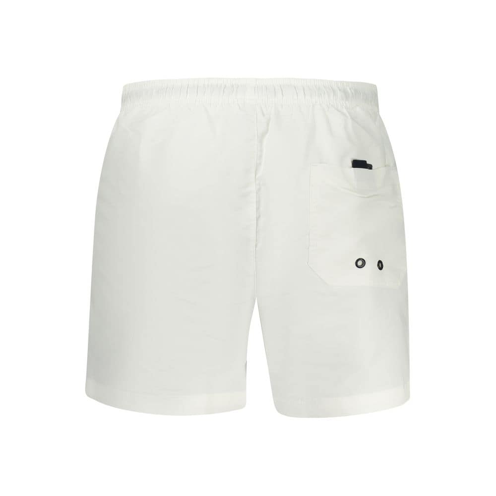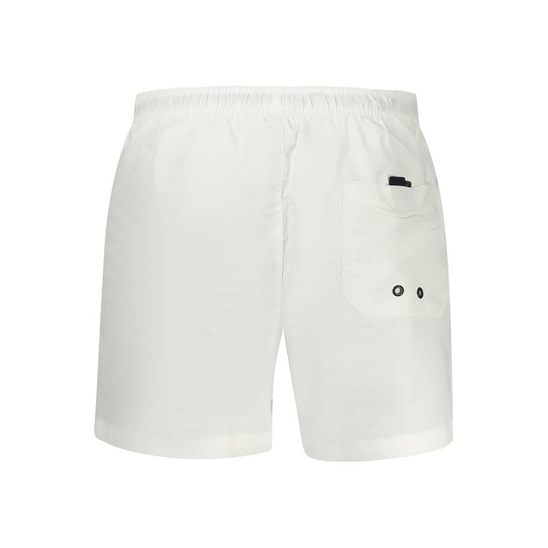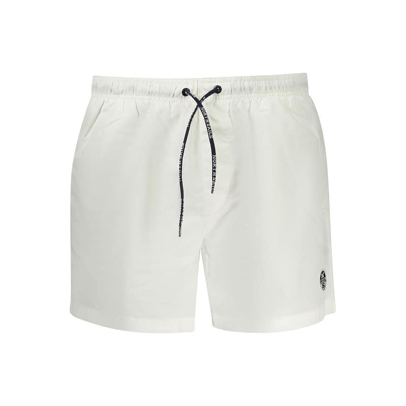 Dive into summer with uncompromising style wearing these NORTH SAILS Swim Boxers. Engineered to make a bold splash, these crisp white swim shorts epitomize modern aquatic fashion. The elastic waist with drawstrings ensures a perfect fit, while the convenience of two front pockets and an additional back pocket blend functionality with form. Featuring an interior slip for added comfort and the NORTH SAILS logo for that stamp of high-quality, these shorts are a must-have for any trendsetting wave rider.