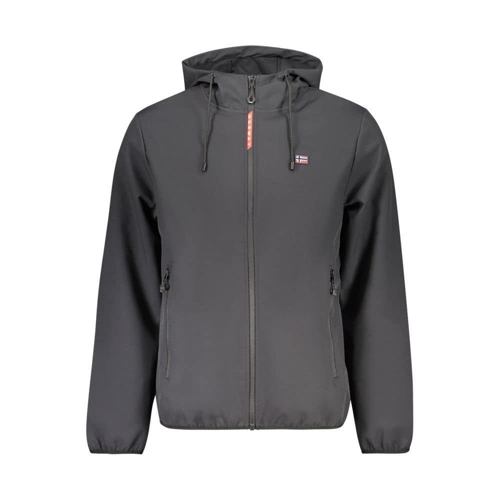 Elevate your outerwear game with the sleek ‘NORWAY 1963’ soft shell jacket. A quintessential blend of functionality and modern aesthetic, this long-sleeved jacket comes equipped with a protective hood and multiple pockets for your essentials. Detailed with bold contrasting accents and a sharp applique logo, it boasts a zip-front for effortless style transitions. Perfect for the urban adventurer who refuses to compromise on style or comfort.