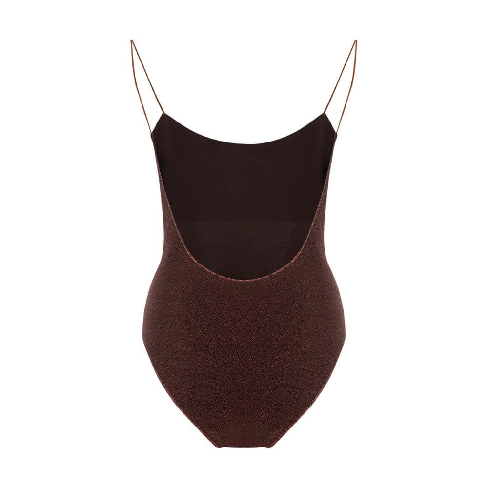 The Lumière Maillot Swimsuit by Oséree is a one-piece model with an elegant and sparkling style. Featuring thin straps and a seductive opening at the back, it is distinguished by a monochrome pattern enriched with all-over applied glitter, giving the look a bright and glamorous touch perfect for sparkling at the beach or poolside.