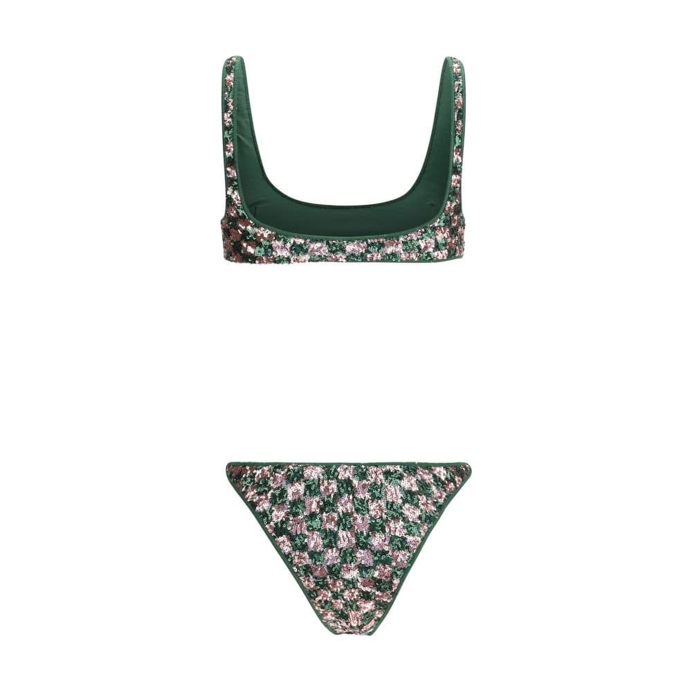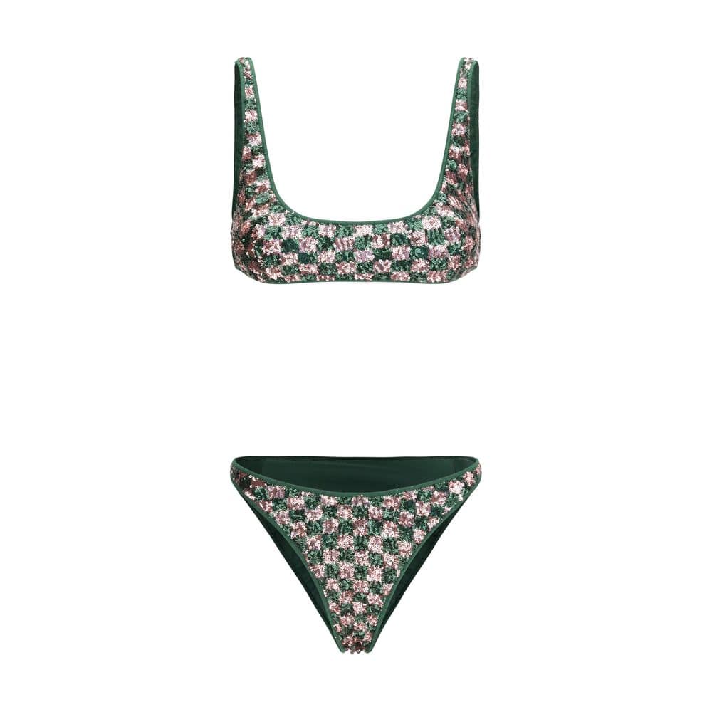 The sequins chess Bikini by Oséree is a bold and contemporary ensemble embellished with chess-effect sequins that reflect the light with a refined graphic touch. The slim fit enhances the silhouette, highlighting the body’s lines with a sporty yet glamorous aesthetic, perfect for special occasions or statement evening looks.