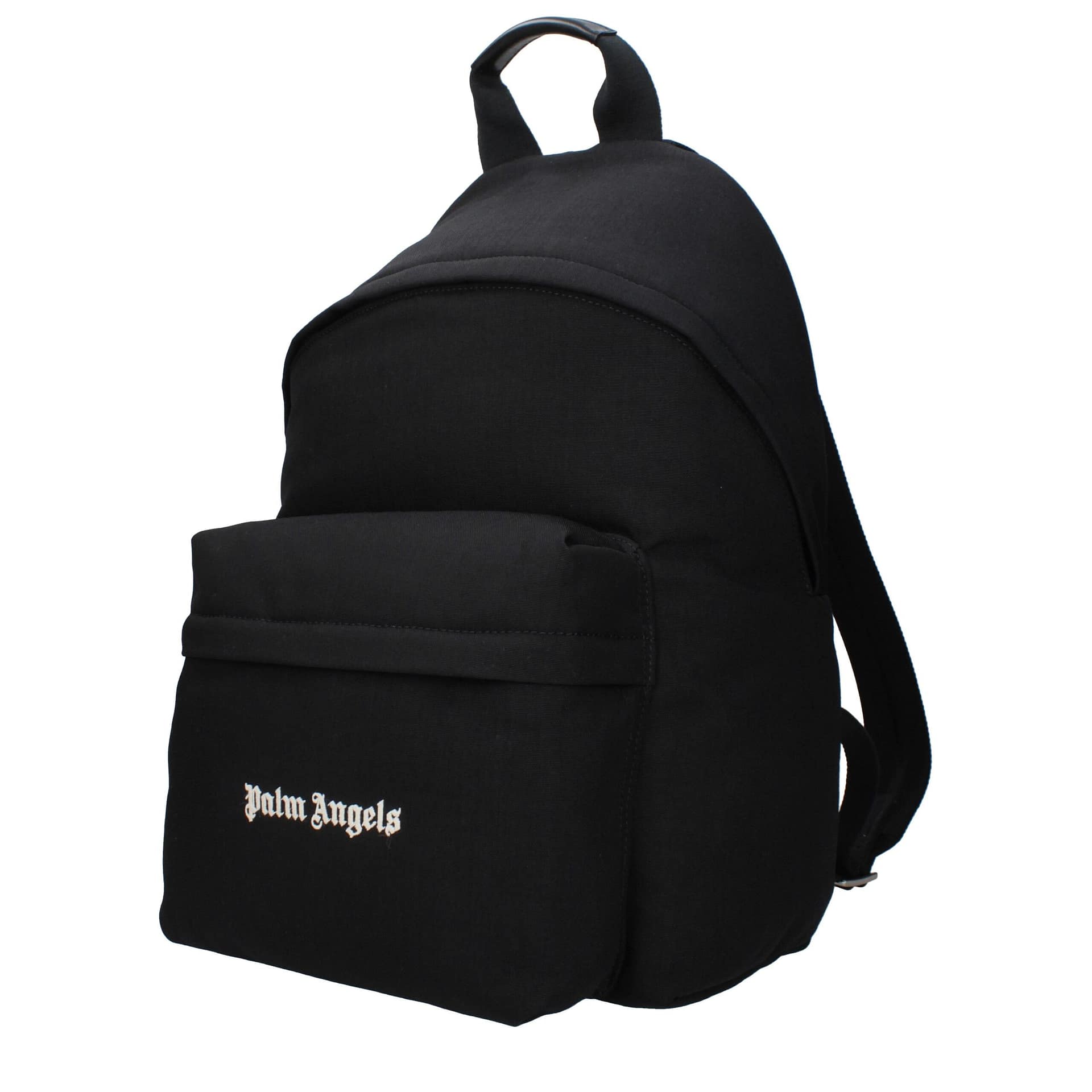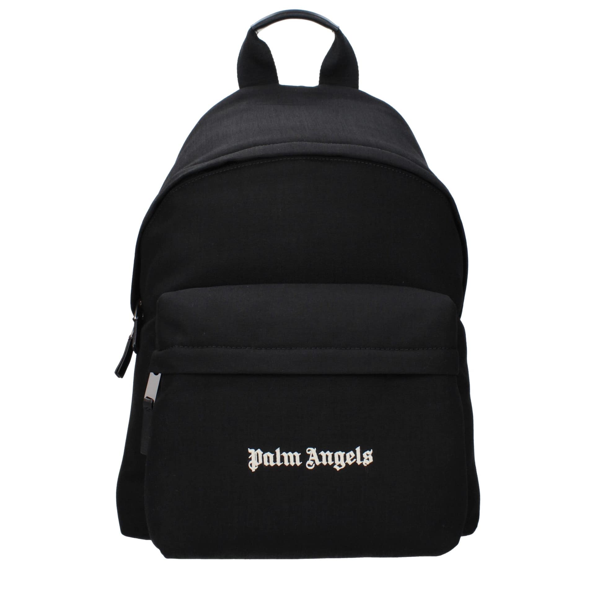 The product with MPN PMNB024FAB0011001 and code F84827 fabric in black is a backpacks and bumbags designed by Palm Angels. It has features like front logo, adjustable straps, vintage effect.