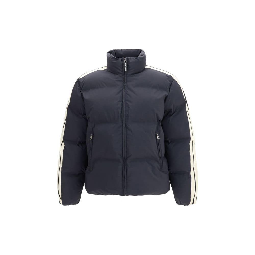 The classic logo track Down Jacket by Palm Angels stands out for a sporty silhouette that reinterprets the brand’s heritage with a contemporary edge. The jacket model by Palm Angels features down filling and a standing collar that define the structure of the garment. The full front zip closure with a branded puller introduces a functional detail. Contrasting side bands along the sleeves and the Curved Logo print on the back add distinctive and dynamic elements. Side zip pockets complete the Classic Logo Track down jacket by Palm Angels with a practical and impactful silhouette.
