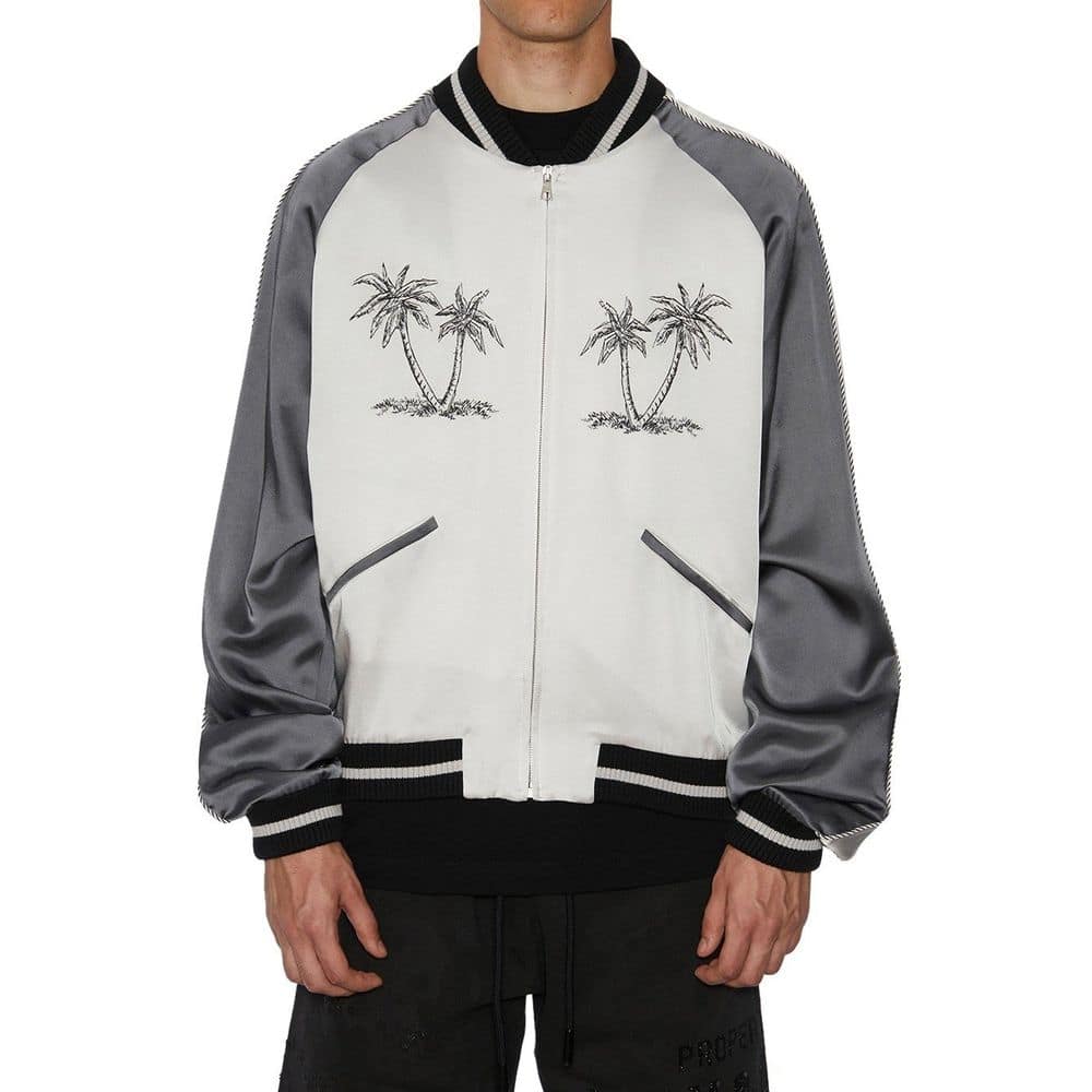 – Composition: 75% Acetate 25% Viscose – Fully lined – Dry clean – Front zip closure – Baseball collar – Ribbed neck, cuffs and hem – Two front slip pockets – Gender: MEN –