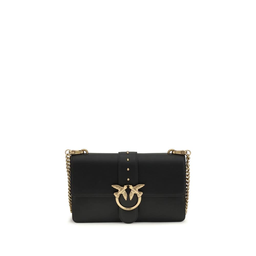 PINKO Black Calf Leather Bos Taurus Shoulder Bag