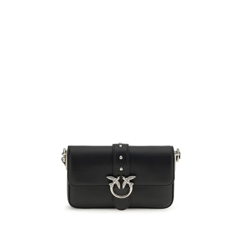 The Baby Love Shoulder Bag by Pinko is an iconic and versatile accessory featuring an adjustable leather shoulder strap with buckle and a chain strap with leather shoulder strap to suit different style needs. The flap closure is embellished with the pod and buckle featuring the iconic Love Birds Diamond Cut logo in antique gold plated metal, giving it a distinctive and elegant touch.