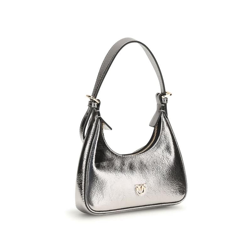 The baby Miss Pinko Baby Shoulder Bag by Pinko is made from soft shiny leather with a vintage effect. Characterized by a crescent shape with a flat base and rounded corners, the model is personalized with a metal plaque depicting the iconic Love Birds Diamond Cut logo on the front. The bag can be worn comfortably on the shoulder or crossbody, thanks to the adjustable top handle and removable leather shoulder strap. The zipper closure reveals a cotton drill-lined interior with a wall pocket with zip and logo tag. An elegant and practical accessory, perfect for any occasion.