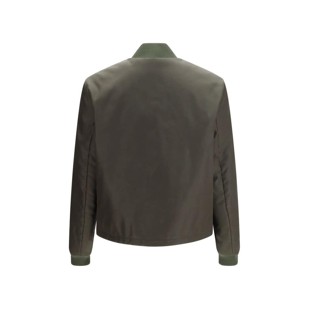 The nylon bomber Jacket by Prada delivers a clean and contemporary aesthetic enriched with the Maison’s iconic details. Crafted from nylon, it features a ribbed crew neck and cuffs that define a streamlined and functional silhouette. A front button fastening and two front slit pockets add practicality, while the drawstring hem allows for adjustable fit. The metal logo triangle on the chest signs the piece with a distinctive touch, finished with a fully lined construction.