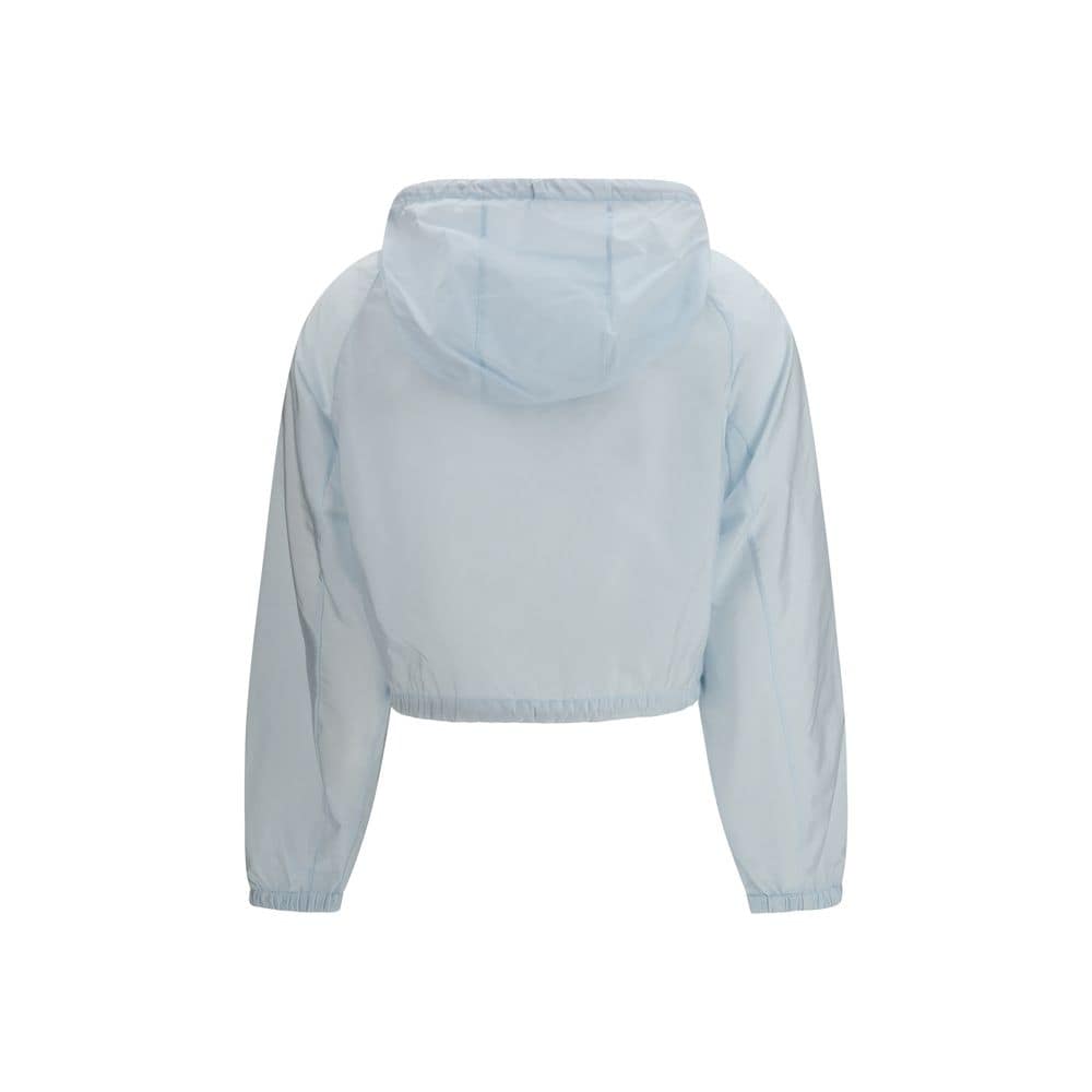 The Re-Nylon Windbreaker by Prada is a versatile and functional garment made from Re-Nylon, a high-quality sustainable material. With a cropped fit, it is embellished with the distinctive metal logo triangle on the chest. The drawstring hood and zip closure ensure practicality, while the two flap pockets and two slit pockets on the front offer extra storage space. The elasticated gathered cuffs and drawstring hem complete the design, ensuring comfort and an adjustable fit.